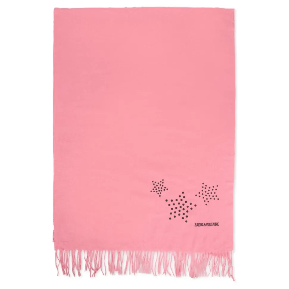 Voeg een vleugje stijl toe aan de outfit van je kleintje met deze roze franje sjaal van Zadig & Voltaire. Versierd met gestippelde sterren en een logo aan de voorkant, meet deze sjaal 66 cm x 182 cm en is gemaakt van 85% polyester en 15% viscose. Machinewasbaar op 30°C.