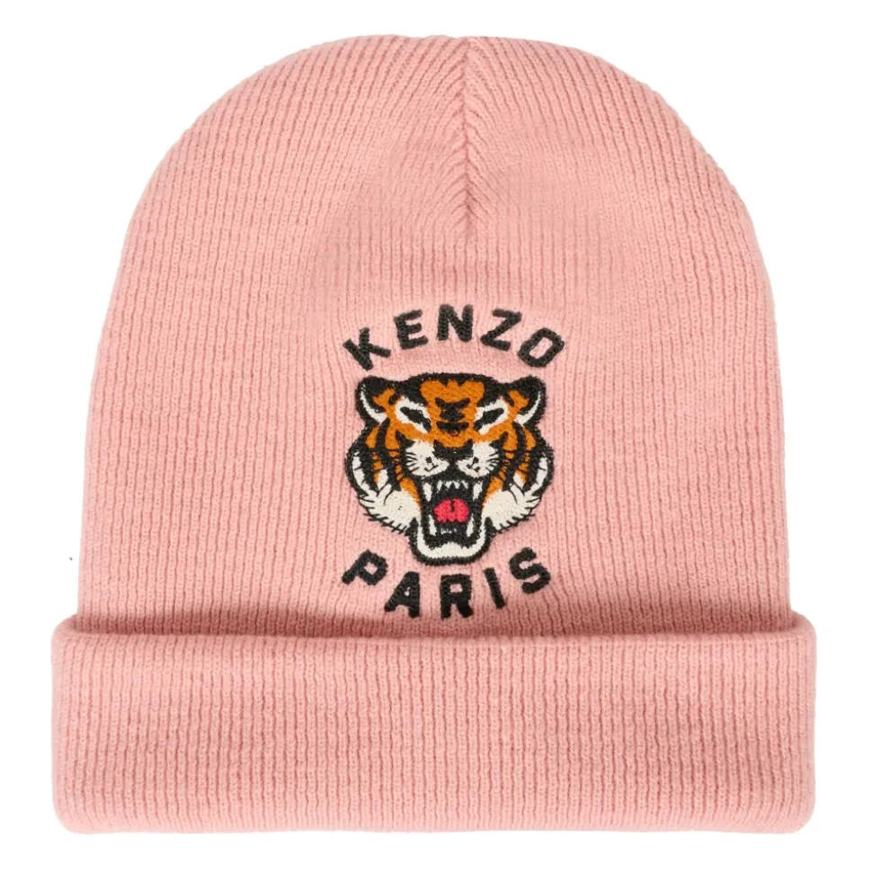 Blijf warm en stijlvol met deze roze Kenzo muts voor kinderen. Gemaakt van 95% katoen en 5% kasjmier, met de iconische Lucky Tiger en logo borduursel op de voorkant.