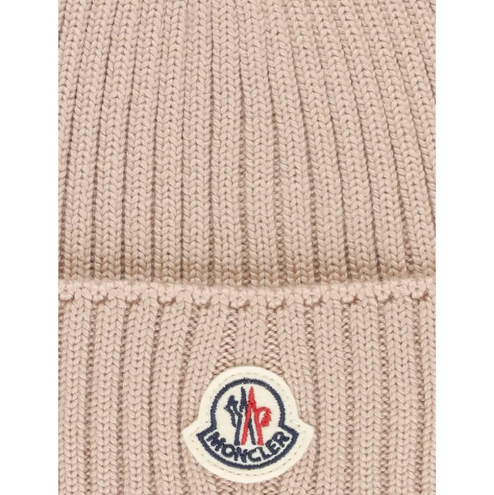 Blijf stijlvol en warm met deze roze Moncler Enfant muts van zuivere wol voor meisjes met een contrasterend gekleurde logo-patch aan de voorkant.