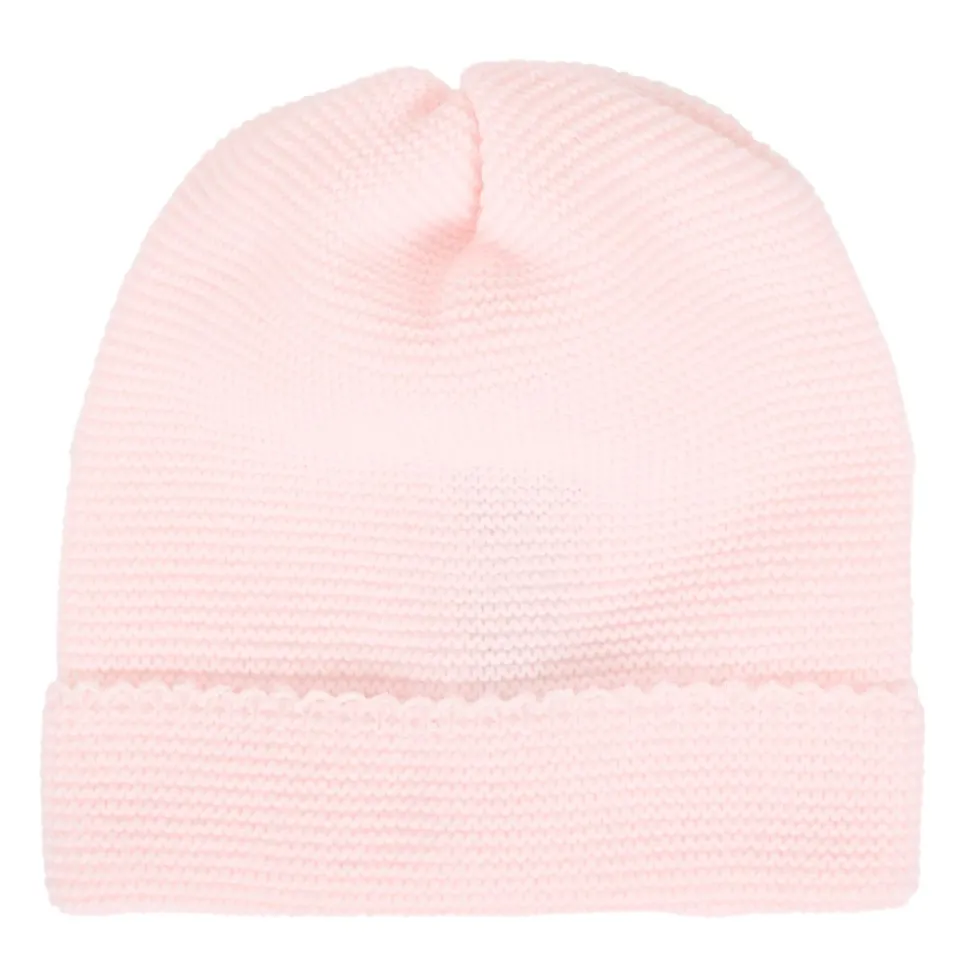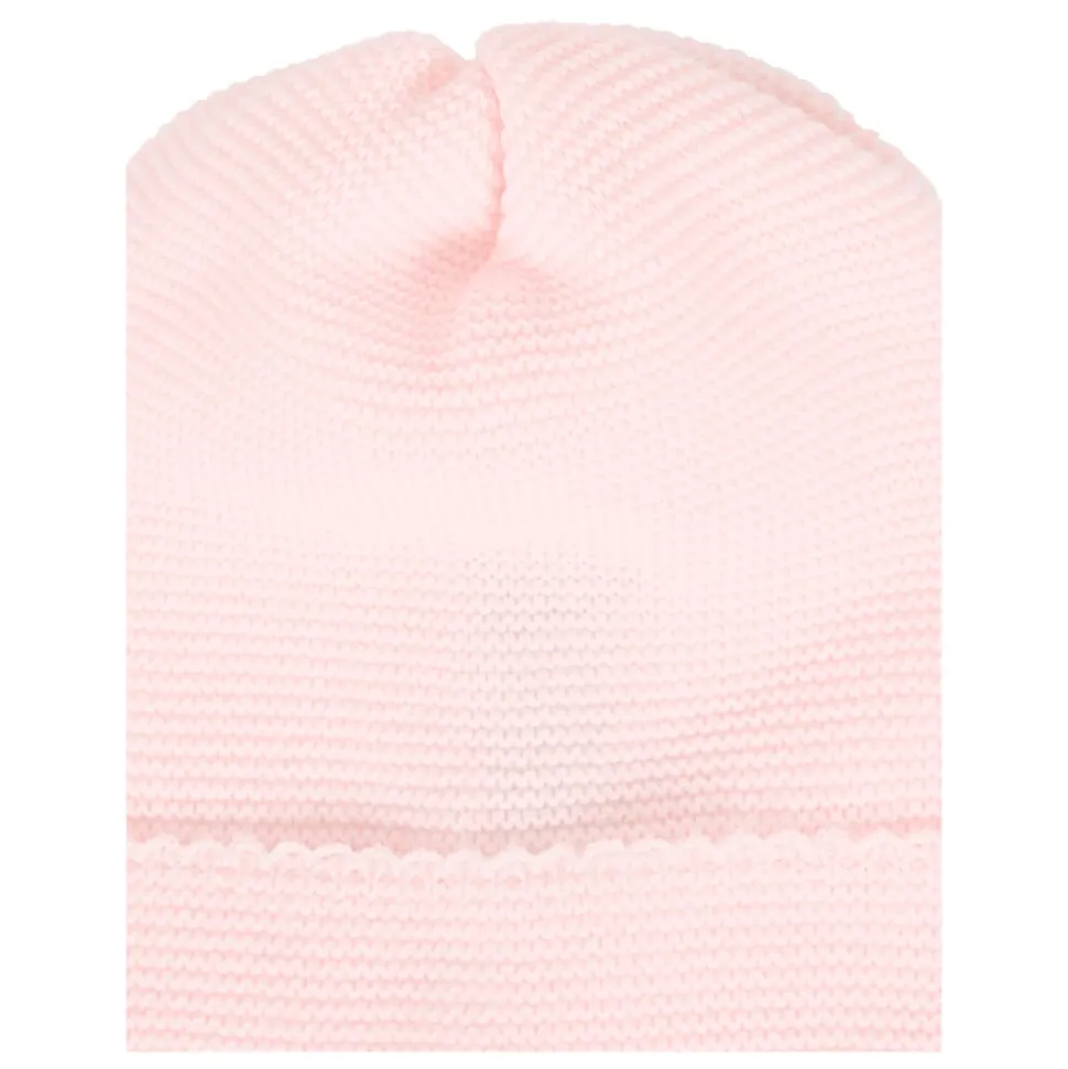 Roze wollen pasgeboren mutsen met geborduurd detail