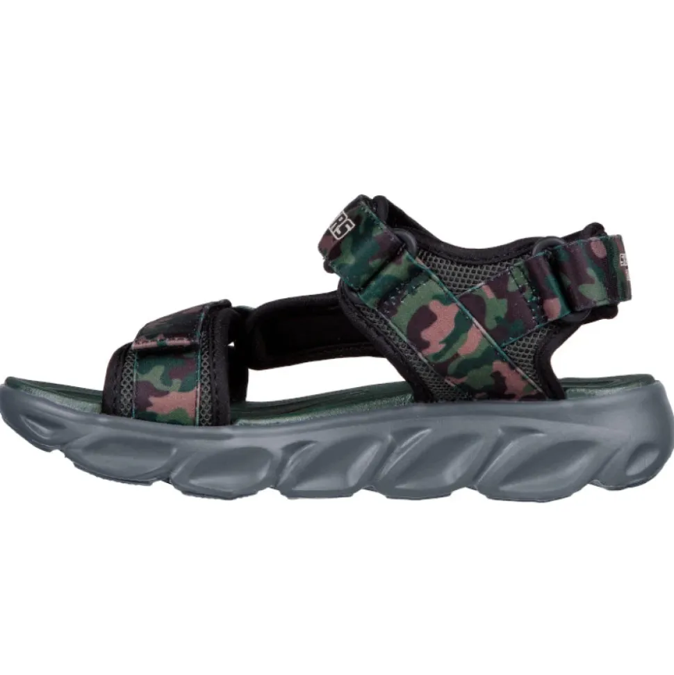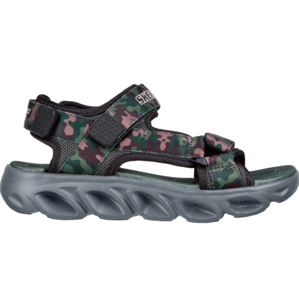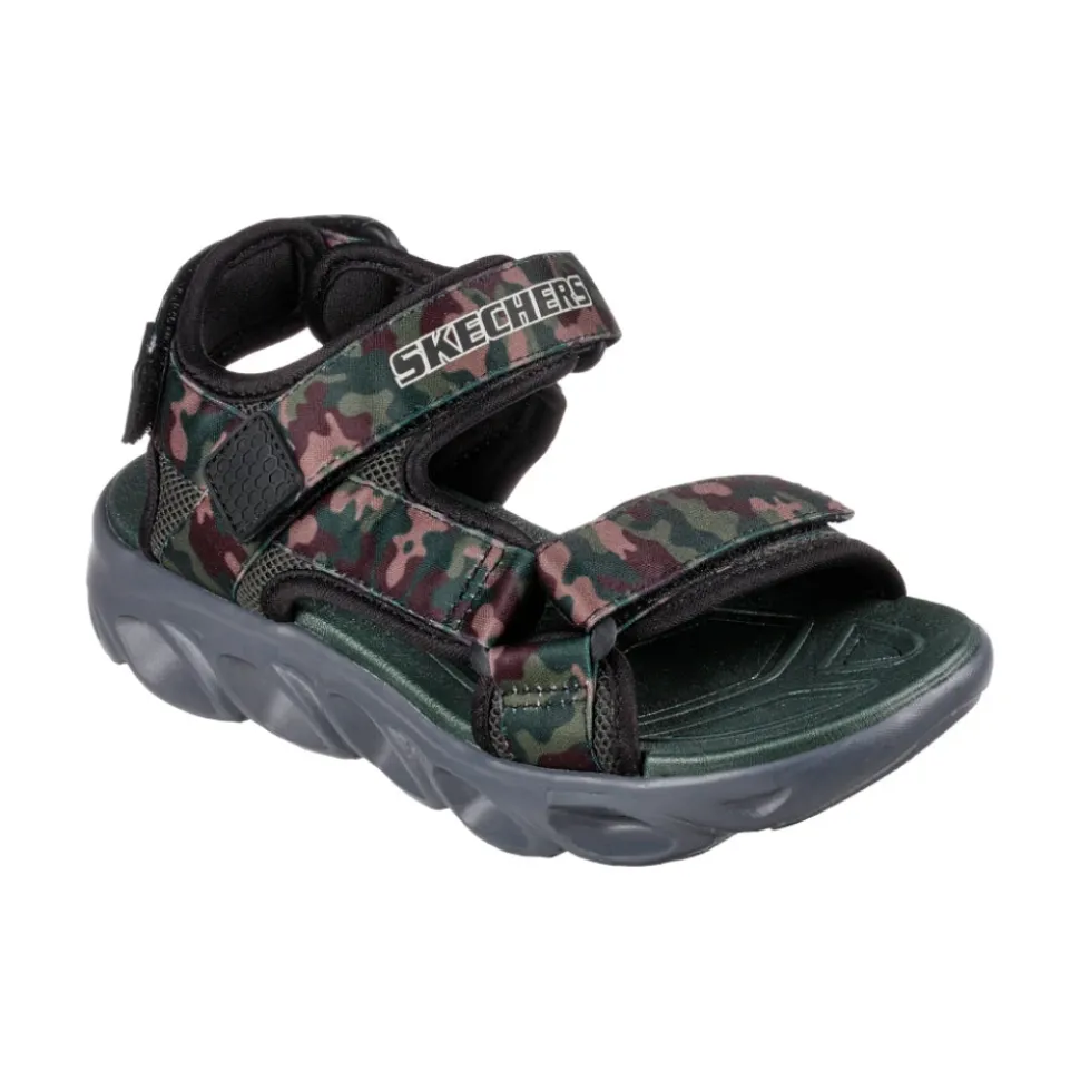 Maak je klaar voor zonnige avonturen met de S-Lights Hypno-Slash Sun Breaks Skov Sandalen van Skechers. Deze sportieve sandalen hebben een camouflage design en lichtgevende tussenzolen, perfect voor actieve dagen. Belangrijkste kenmerken: Groen | Textiel | Klittenbandsluitingen | Schokabsorberend voetbed | Camouflage print op de buitenlaag | Lichtjes in de tussenzool |