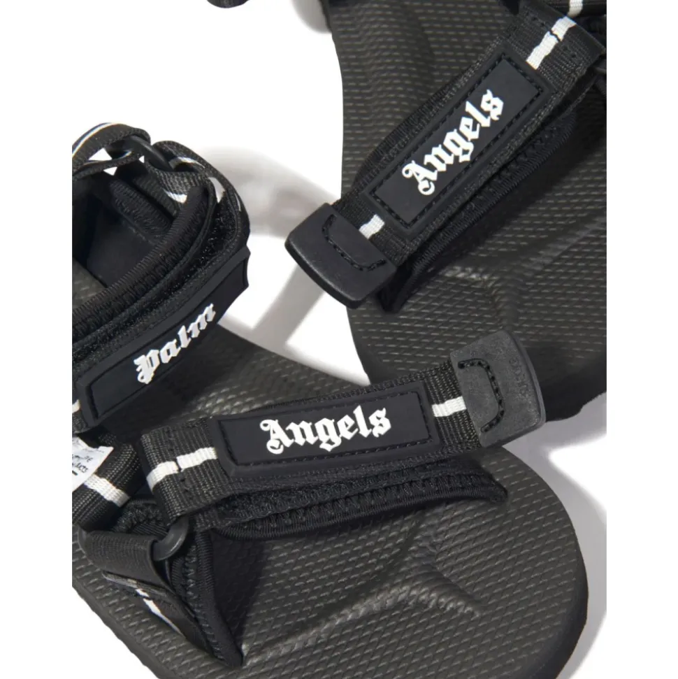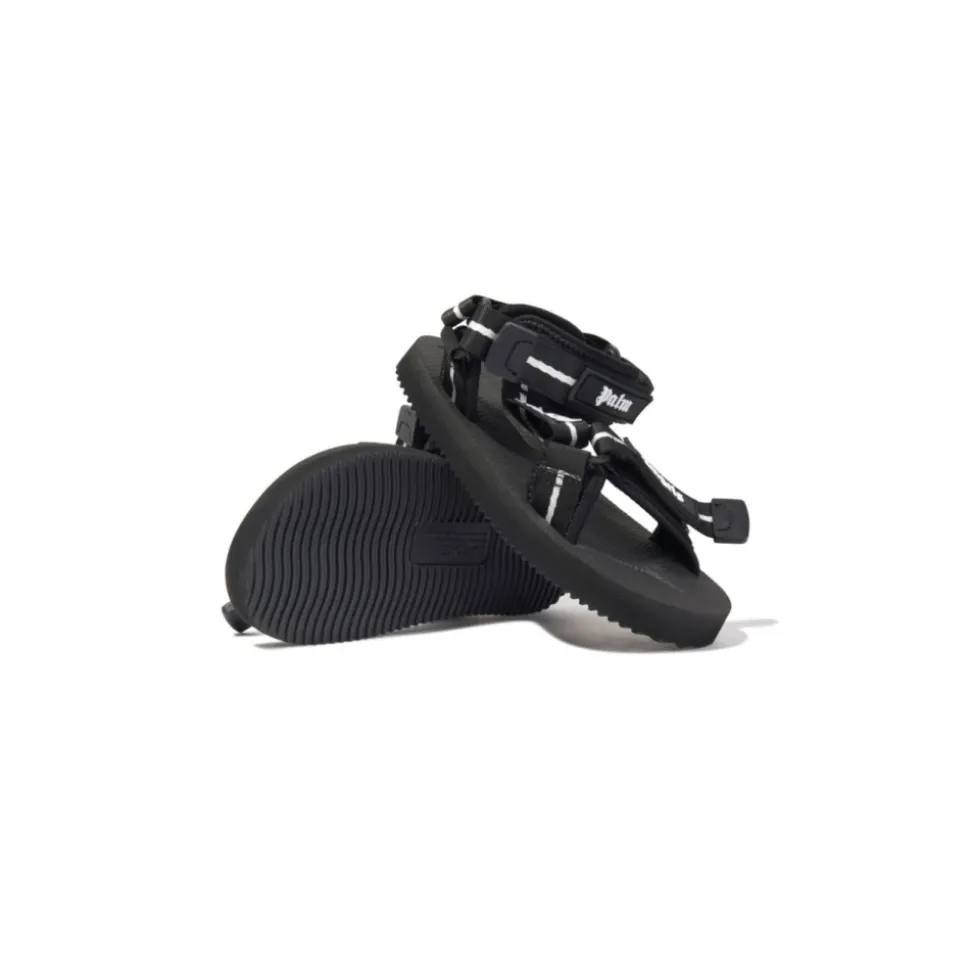 De Palm Angels Sandaal met Stijl DEPA2KIDS biedt een stijlvolle en comfortabele optie voor dagelijks gebruik, met een band met logo-print en een rubberen zool. Belangrijkste kenmerken: Zwart | Wit | Polyamide | Verstelbare banden | Band met logo-print | Ronde open teen | Afmetingen en pasvorm: Normale pasvorm | Samenstelling en onderhoud: Zool 100% Rubber | Bovenkant schoen 100% Polyamide | Reinig met een vochtige doek.