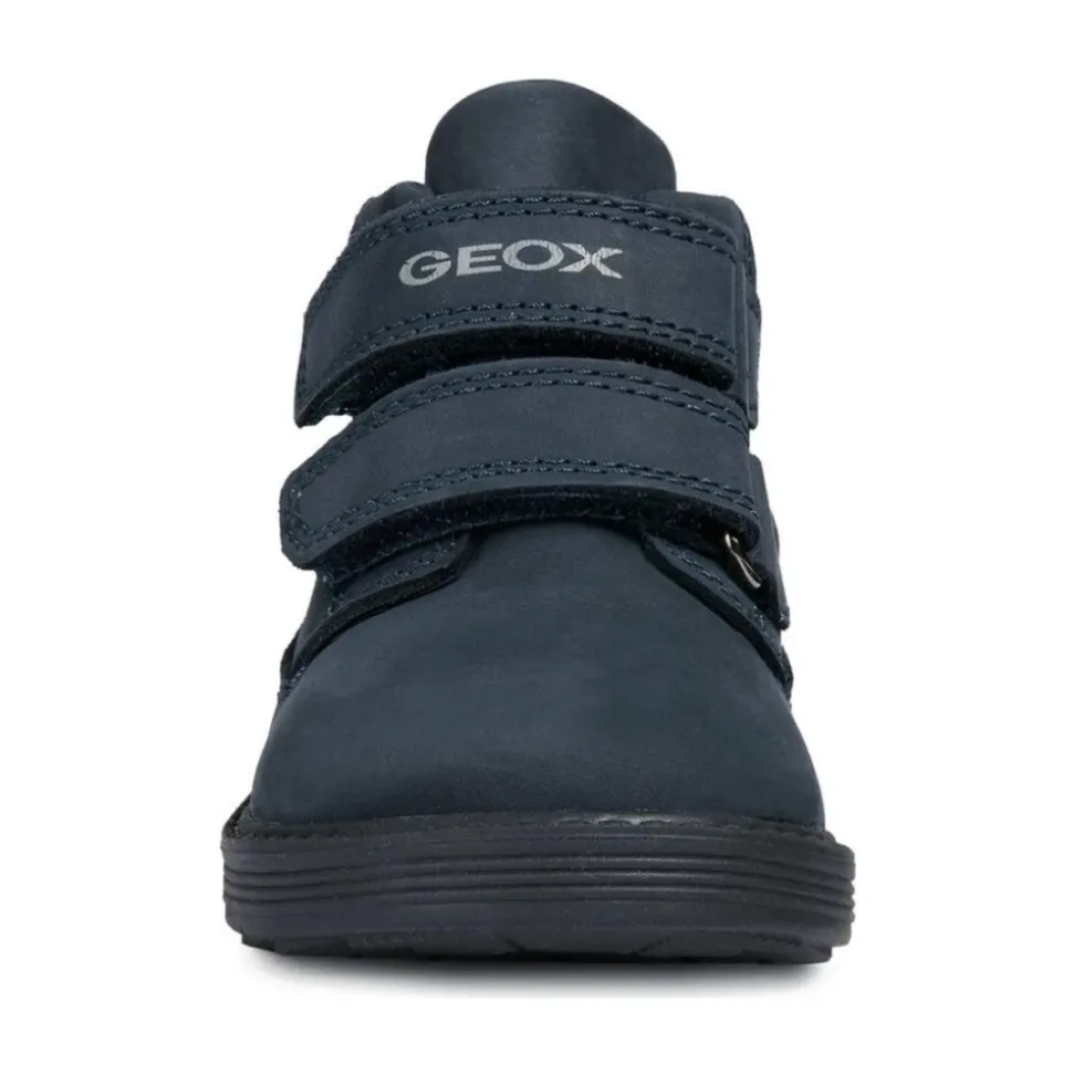 Kleed je kleine man in stijl met deze Geox blauw-navy booties. Gemaakt van hoogwaardig nubuck en PU, met een leren en synthetische stof binnenvoering en een rubberen zool. Perfect voor informele gelegenheden.