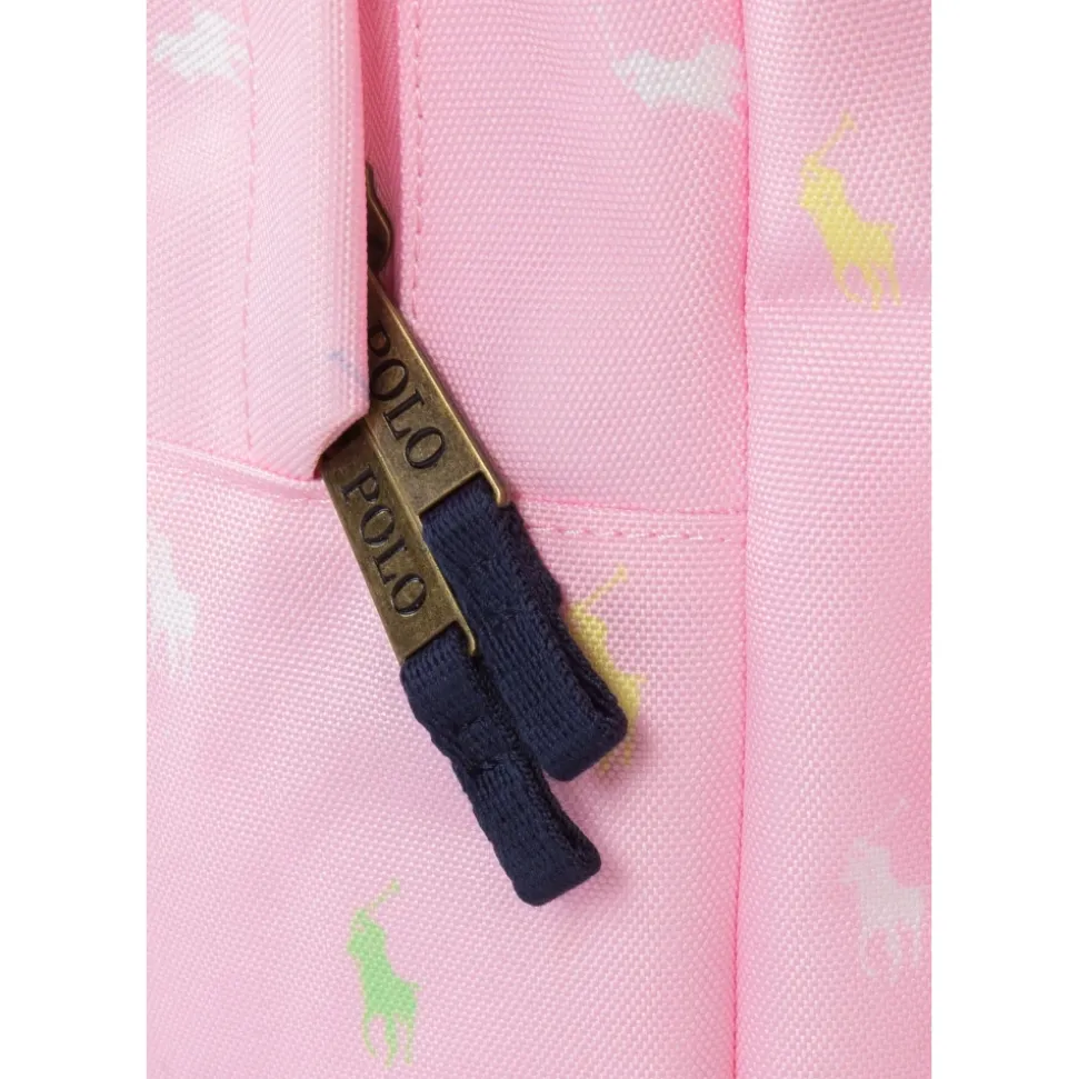 Roze Ralph Lauren-rugzak met all-over multicolor logo Levendig en onderscheidend ontwerp: roze rugzak versierd met het Ralph Lauren-logo all-over in multicolor versie, voor een frisse en vrolijke stijl. materiaal: gemaakt van stevig materiaal om duurzaamheid en weerstand tegen dagelijks gebruik te garanderen. Functioneel en ruim: groot hoofdcompartiment met ritssluiting en voorvak voor het opbergen van kleinere items. Verzorgde details: ritsen met aangepaste trekkers en versterkte stiksels. Veelzijdig: perfect voor school, sportactiviteiten, uitstapjes of vrije tijd.