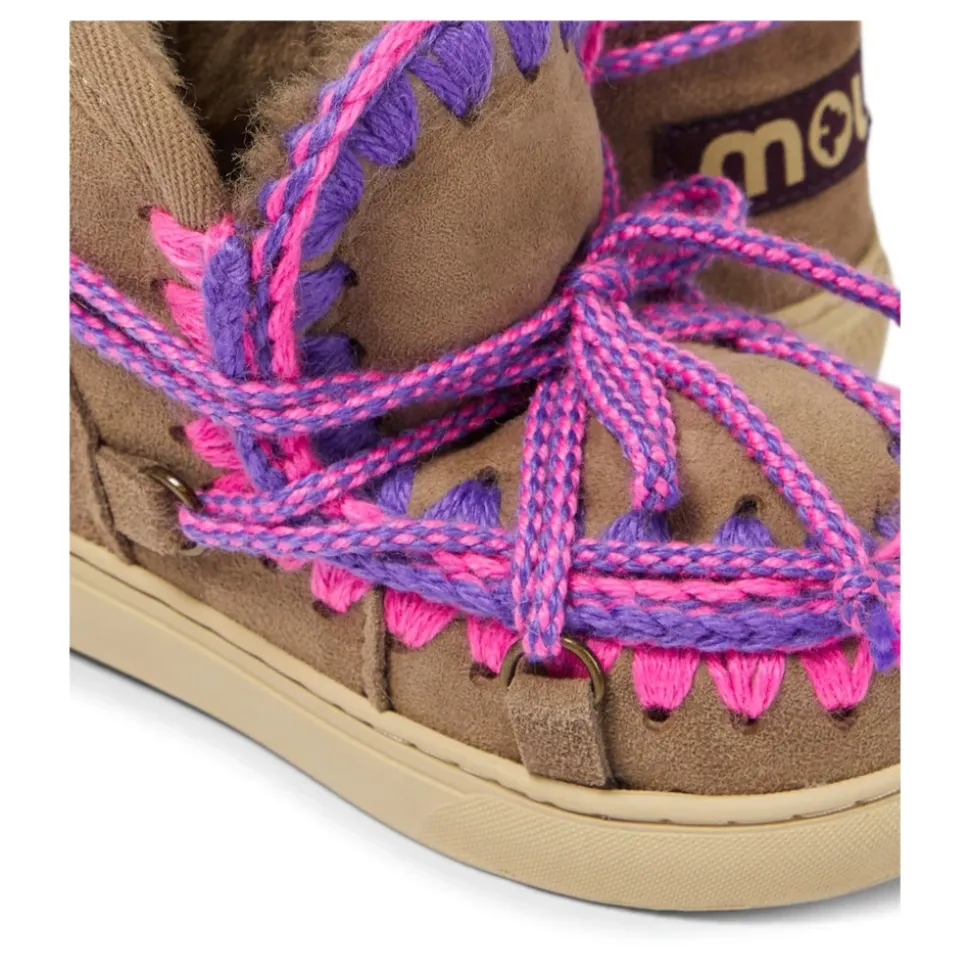 Ontdek de Mou Scoubidou crochet-trim suède snowboots, met een unieke gehaakte rand en shearling voering voor ultiem comfort en stijl. Belangrijkste kenmerken: Camel Brown | Grass Green | Salmon Pink | Suède | Wol | Vetersluiting aan de voorkant | Gehaakte rand | Logopatch aan de achterkant | Ronde neus |