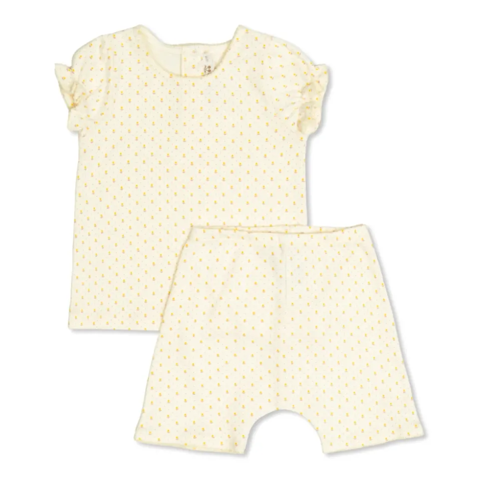 Maak kennis met de EMANI SET, een uniek ensemble voor de allerkleinsten van het gerenommeerde Franse merk BONPOINT. Deze charmante set in een crèmekleur, versierd met een subtiel patroon van gele en roze bloemen, belichaamt de essentie van kinderelegantie en comfort. Het T-shirt met korte mouwen, afgewerkt met delicate ruches, straalt meisjesachtige charme uit. Klassieke shorts met een elastische taille zorgen voor draagcomfort, perfect voor de gevoelige huid van een kind. De hele set is gemaakt van de hoogste kwaliteit katoen, wat zorgt voor zachtheid en een aangename aanraking. Verfijnd in elk detail, de ruches en subtiele afwerkingen voegen een elegant karakter toe aan de set, wat ouders zal verrukken die om de stijl van hun kinderen geven. WAAROM ZOU U DIT PRODUCT KOPEN? * Uitzonderlijk ontwerp van het merk Bonpoint, dat traditie en moderniteit combineert. * Gemaakt van de hoogste kwaliteit katoen, vriendelijk voor de huid van een kind. * Charmant patroon en elegante details die ervoor zorgen dat uw kind opvalt. * Comfortabele pasvorm, ideaal voor kinderen van 0-36 maanden.