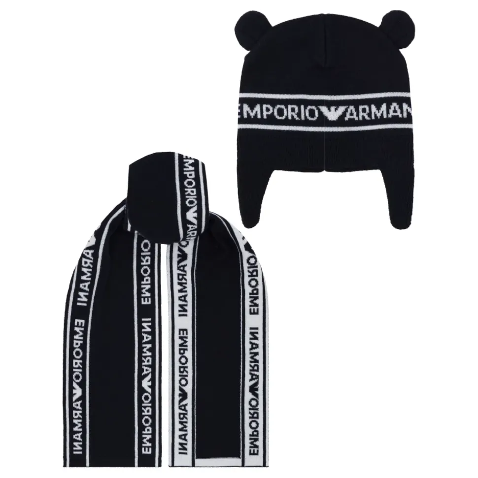 De Emporio Armani Set Regalo combineert verfijnde stijl met praktische warmte. De set bestaat uit een muts met oor details en een bijpassende sjaal, beide afgewerkt met jacquard logo letters. Belangrijkste kenmerken: Blauw | Blu | Virgin wol | Inclusief muts en sjaal | Biedt warmte en zachtheid | Muts met oor details | Logo jacquard letters | Gladde gebreide afwerking | Bijpassende sjaal | Afmetingen & pasvorm: Comfortabele, nauwsluitende pasvorm, geschikt voor koud weer | Samenstelling & verzorging: 50% virgin wol | 50% acryl | Machinewas koud; niet bleken; niet in de droogtrommel; strijken op lage temperatuur; niet chemisch reinigen; volg de instructies op het waslabel.