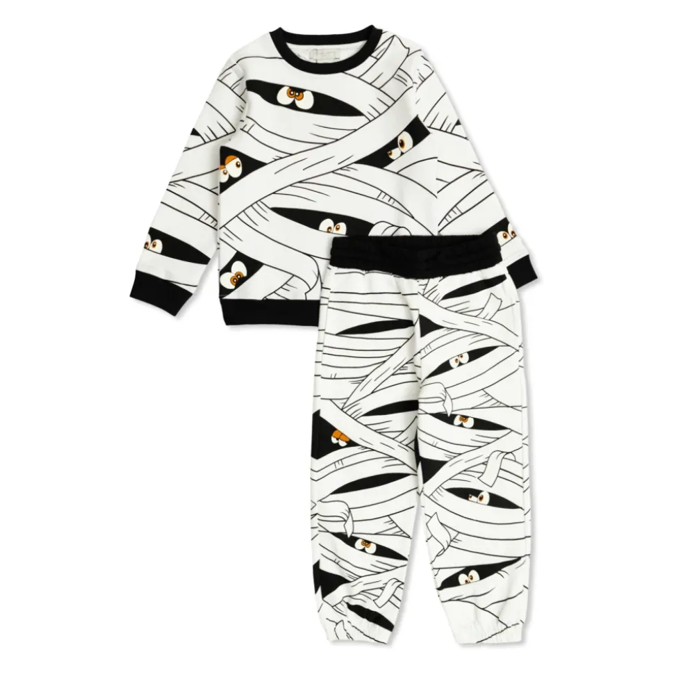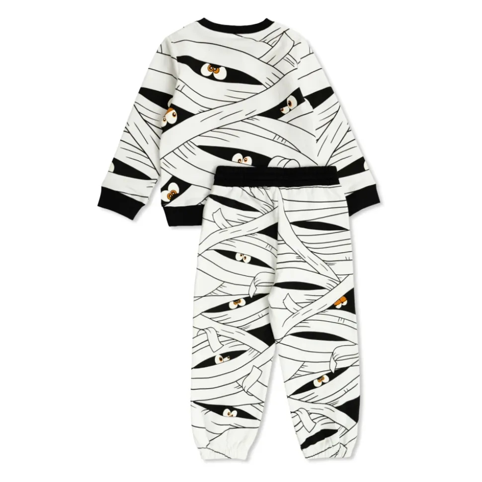 SET: SWEATSHIRT EN BROEK van Stella McCartney Kids is de essentie van verfijnde kindermode in een onconventionele editie. De set combineert een klassieke, eenvoudige sweatshirt met lange mouwen met comfortabele sweatpants met subtiel toelopende pijpen, afgewerkt met een elastische band. Een uniek decoratief motief geïnspireerd op een mummie, gebaseerd op brede witte banden met opvallende ogen op een zwarte achtergrond, trekt de aandacht en introduceert een speels en expressief element. De set is gemaakt van glad katoenen breisel, wat zorgt voor niet alleen uitzonderlijke zachtheid maar ook ademend vermogen – de perfecte combinatie van comfort en elegantie. Door het ontbreken van zichtbare logo’s of overmatige versieringen te benadrukken, benadrukt de hele set de verfijnde eenvoud van het ontwerp en richt de aandacht op het onderscheidende patroon en uitstekend vakmanschap. WAAROM ZOU U DIT PRODUCT KOPEN? * De uniekheid van het patroon voegt karakter toe aan de garderobe van kinderen * Natuurlijke, kindvriendelijke stof zorgt voor comfortabel dragen * Klassieke snit garandeert bewegingsvrijheid * Ontworpen door het gerenommeerde merk Stella McCartney Kids