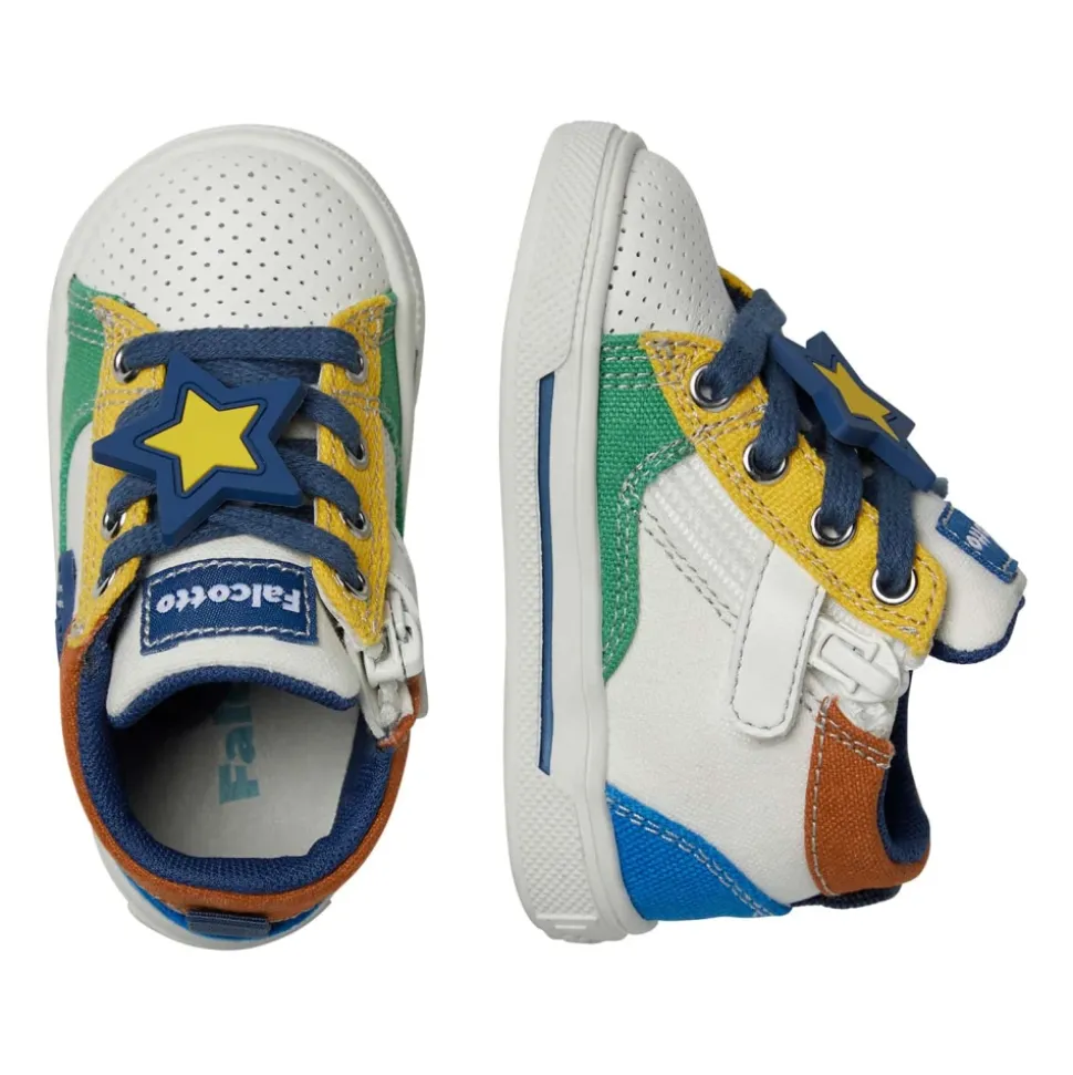 Falcotto Shin Zip is een sneaker van imitatieleer en textiel, ontworpen voor dagelijks gebruik. Het combineert een zachte stoffen voering met een ondersteunende binnenzool en een vetersluiting met ritssluiting voor gemakkelijk aan- en uittrekken. Belangrijkste kenmerken: Multicolor | Wit | Geel | Imitatieleer en textiel | constructie | Comfortgerichte binnenzool | Vetersluiting | Ritssluiting voor snelle pasvorm | Stoffen voering | Leren binnenzool | Samenstelling & onderhoud: Imitatieleer (bovenkant) | Textiel (bovenkant en voering) | Rubber (buitenzool) | Leer (binnenzool)