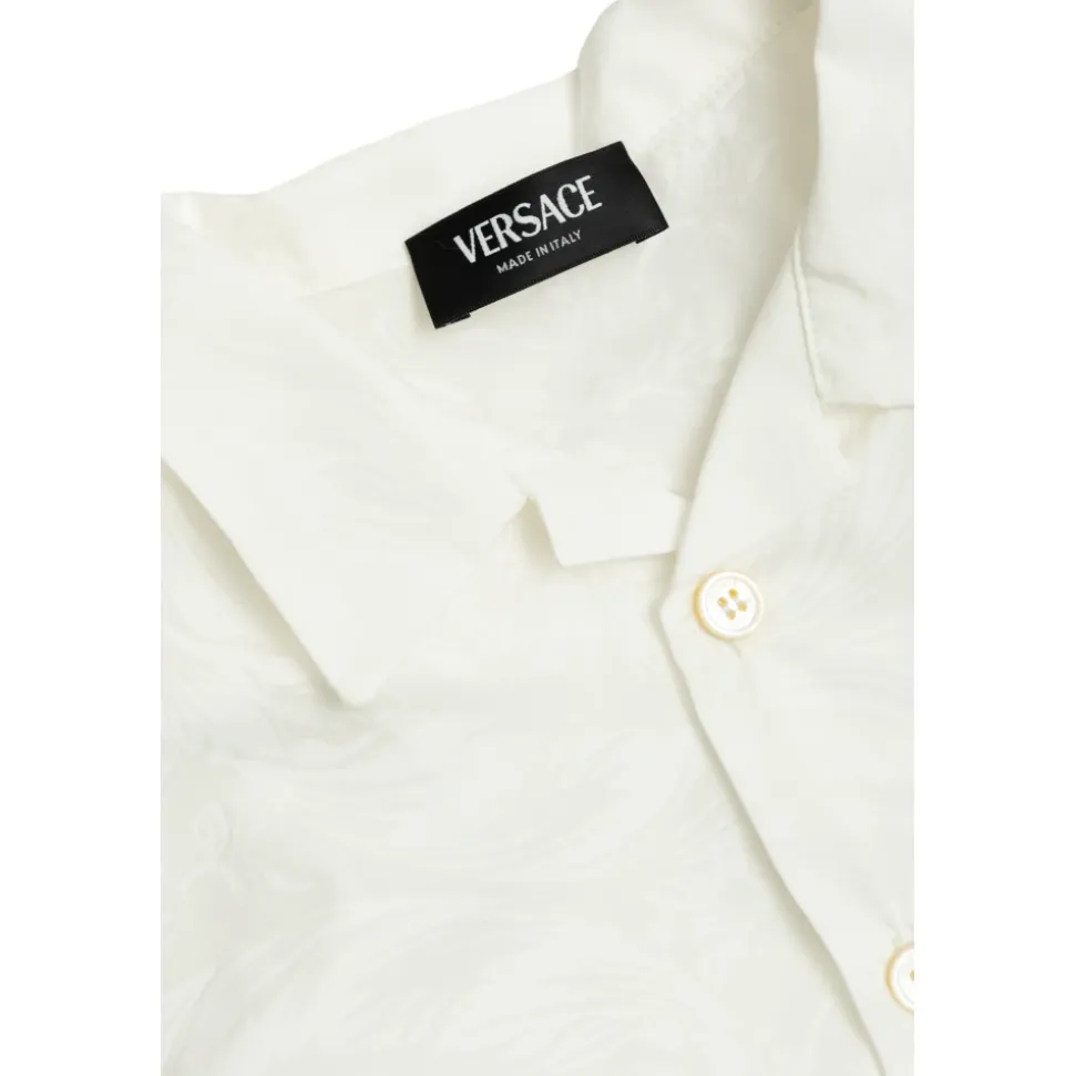 Versace presenteert de Shirt en Shorts Set, vervaardigd uit delicaat glinsterend katoen en afgewerkt met een reliëf ton-sur-ton botanisch/barok patroon. De set combineert een klassiek kort overhemd met knoopsluiting en gespreide kraag met bijpassende shorts met een elastische tailleband voor een verfijnde, veelzijdige look. Belangrijkste kenmerken: Wit | Katoen | Zacht aanvoelend | Ademende stof | Knoopsluiting aan de voorkant | Elastische tailleband op de shorts | Designerlabel aan de kraag genaaid | Logo label op de achterkant van de shorts | Kort overhemd met knoopsluiting | Gespreide kraag | Korte mouwen | Reliëf ton-sur-ton botanisch/barok patroon | Bijpassende eenvoudige shorts | Samenstelling & verzorging: Katoen