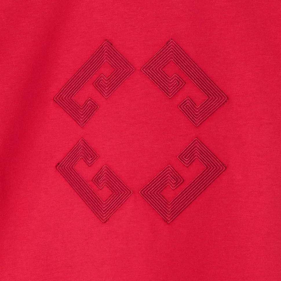 Givenchy Short Sleeves T-Shirt is een katoenen T-shirt met ronde hals en het kenmerkende 4G-logo borduursel van het merk. Ontworpen voor dagelijks gebruik, past het gemakkelijk bij casual en street-inspired looks. Belangrijkste kenmerken: Rood | Bordeaux | Katoen | Ronde hals | Korte mouwen | 4G-logo borduursel op de voorkant | Tone-on-tone letterlogo op de achterkant | Afmetingen & pasvorm: Regular fit | Samenstelling & verzorging: 100% katoen | Machinewas