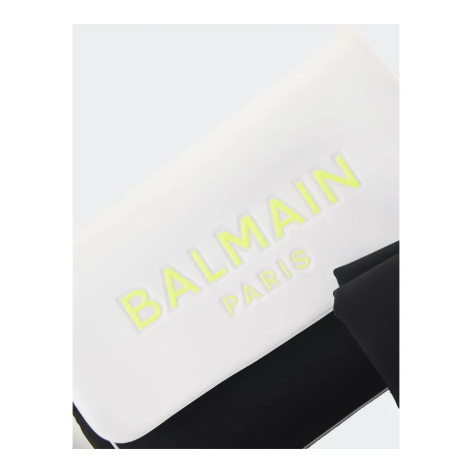 De Balmain Shoulder Bag combineert een strak, effen silhouet met praktische organisatie en een afneembare logo-strap. De opvallende kenmerken zijn de afneembare logo-tracolla en veilige magnetische metalen sluiting voor dagelijks gebruik. Belangrijkste kenmerken: Zwart | Nero | Polyurethaan | Afneembare logo-strap | Magnetische metalen sluiting | Twee compartimenten | Kaartsleuf | Intern steekvak | Extern ritsvak | Effen kleur | Fluorescerend logo aan één kant | Metalen hardware | Samenstelling & verzorging: 60% Polyurethaan | 27% Polyamide | 10% Polyester | 3% Elastaan | Volg de wasvoorschriften op het label aan de binnenkant van het item.