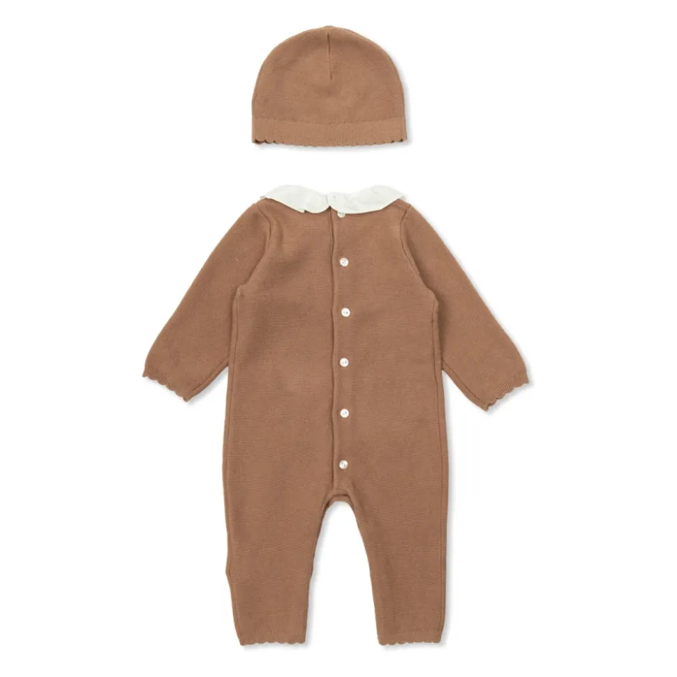 De Chloé Slaappak en Muts Set combineert een zachte katoen-cashmere breisel met een contrasterende ronde kraag en delicate bloemenborduursels, voor een knus comfort en verfijnde details voor dagelijks gebruik. Belangrijkste kenmerken: Bruin | Katoen en cashmere | Zacht breisel | Fluweelzachte finish | Warme breisel | Knopensluiting op de rug | Bedekte voeten | Inclusief bijpassende muts | Ronde contrasterende kraag | Lange mouwen | Crème bloemenborduursel | Geborduurd logo | Samenstelling & onderhoud: 95% katoen | 5% cashmere | Machinewas op 30°C.