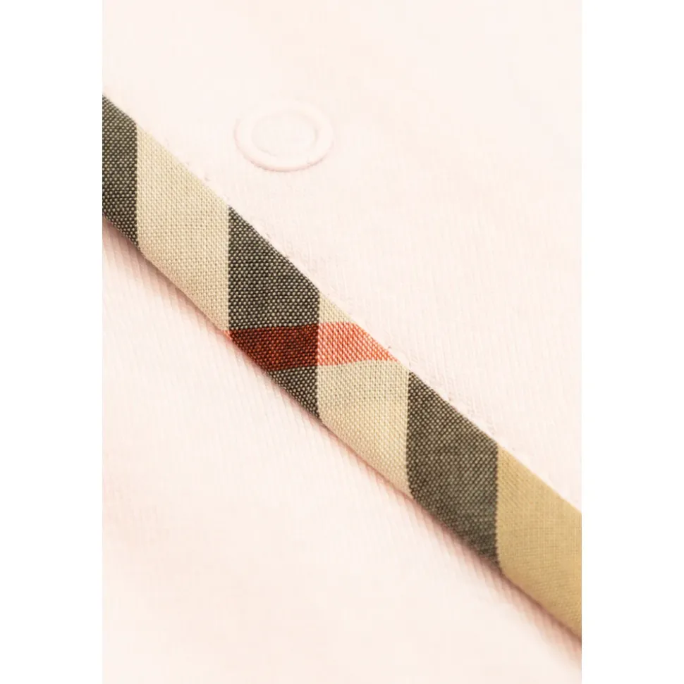 De Burberry Sleepsuit, Bib and Hat Set combineert verfijnd design met praktisch comfort. De set is voorzien van een kenmerkende house check afwerking en een asymmetrische sluiting voor het makkelijker verschonen. Belangrijkste kenmerken: Roze | Katoen | Zacht | Huidvriendelijk | Asymmetrische sluiting voor het makkelijk verschonen | Handig, voor dagelijks gebruik | Delicate kraag | House check afwerking bij kraag en sluiting | Bijpassende slab en muts | Lange mouwen en pijpen | Samenstelling & onderhoud: Katoen