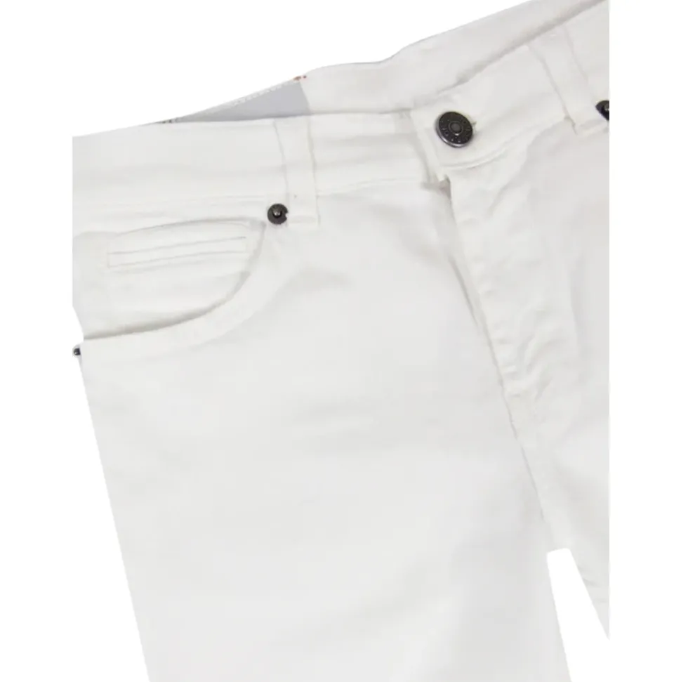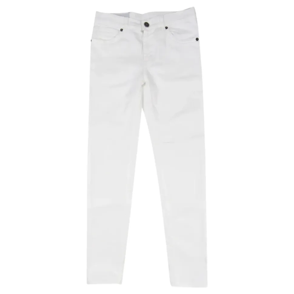 Dondup Slim Five-Pocket Jeans zijn witte stretch denim broeken met een strak, slank silhouet. Ze vallen op door hun klassieke five-pocket constructie en een merklogo detail aan de achterkant. Belangrijkste kenmerken: Wit | Katoen | Stretch stof | Five-pocket design | Riemlussen | Logo op de achterkant | Afmetingen & pasvorm: Slim fit | Samenstelling & onderhoud: 92% katoen | 6% elastomultiester | 2% elastaan