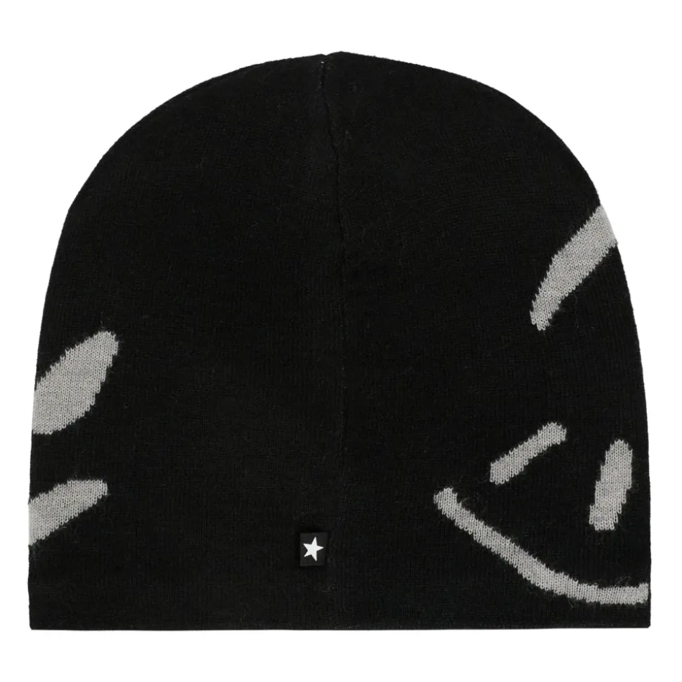 Blijf warm en stijlvol met deze zwarte wollen muts van Molo, met een pluche voering en een algeheel glimlachend ontwerp. Gemaakt van 50% wol en 50% acryl. Alleen handwas.
