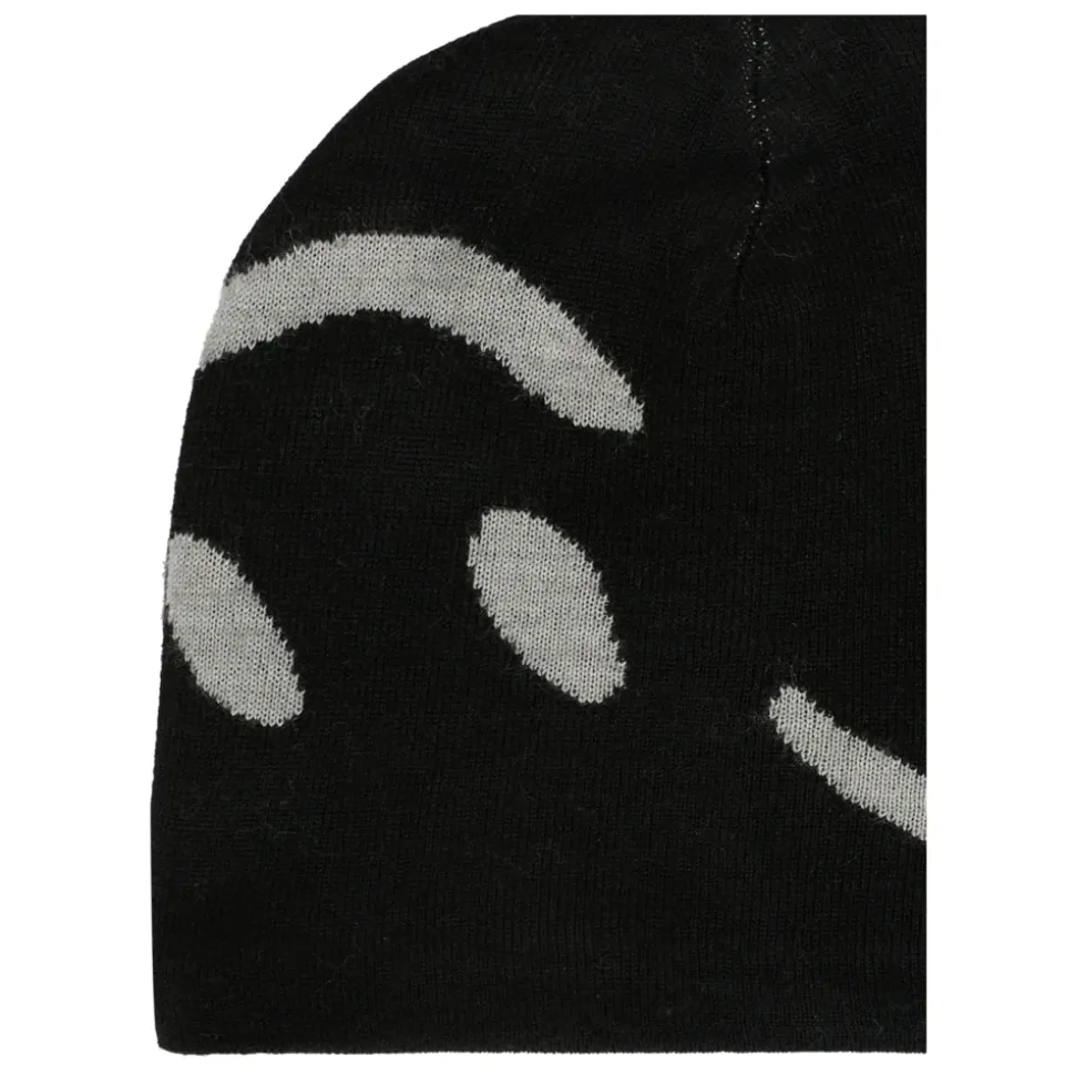 Smiley Zwarte Wollen Blend Beanie Hoed
