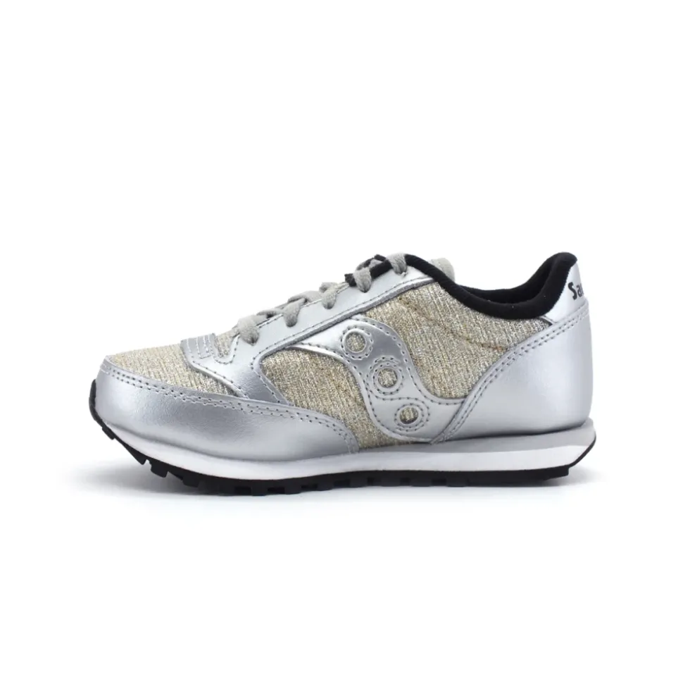 Saucony sneaker met een bovenwerk van leer en textiel en een zilveren glitterafwerking. Ontworpen voor dagelijks gebruik, met een ronde neus en vetersluiting voor een stevige pasvorm. Belangrijkste kenmerken: Grijs | Zilveren Glitter | Leer | Vetersluiting | Rubberen zool | Ronde neus | Zilveren glitterafwerking | Samenstelling & onderhoud: Bovenkant: Leer en textiel | Voering: Leer | Zool: Rubber