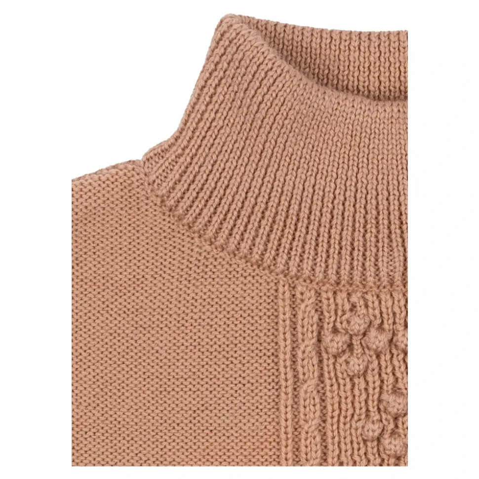 De CABBY nekwarmer van het prestigieuze merk KONGES SLØJD staat synoniem voor elegantie en verfijnde stijl. Gemaakt van de hoogste kwaliteit Merinowol, biedt het buitengewoon comfort en warmte op koelere dagen. De gladde gebreide textuur, versierd met een kabelpatroon, gecombineerd met een warme beige tint met een subtiele roze tint, creëert een product met een uniek karakter. Deze uitzonderlijke nekwarmer heeft een hoge kraag die perfect beschermt tegen de kou, en de zorgvuldig afgewerkte randen getuigen van aandacht voor het kleinste detail. Ideaal in combinatie met andere accessoires zoals handschoenen en sokken uit dezelfde lijn, is het een onmisbaar element in de wintergarderobe van een kind. WAAROM ZOU U DIT PRODUCT KOPEN? * Gemaakt van luxueuze Merinowol. * Elegant kabelpatroon voegt chic toe. * Doordachte constructie voor maximaal comfort. * Zorgvuldig afgewerkte randen voor esthetiek en duurzaamheid. * Ontwerpen geïnspireerd door productie.