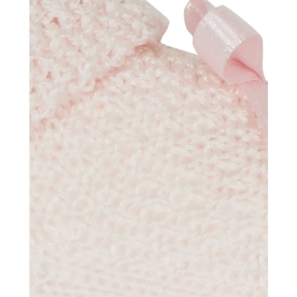Kindersokken gemaakt in Italië van rijstgestikt katoenen stof met lichtroze satijnen strik. Perfect voor die eerste paar maanden.
