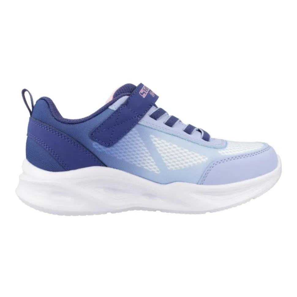 De Skechers Sola Glow – Ombre Deluxe sneakers combineren een veelkleurige oplichtende tussenzool met comfortabele demping voor dagelijks gebruik. Ontworpen voor gemakkelijk aan- en uittrekken, combineren ze speelse verlichting met ondersteunende demping en flexibele grip. Belangrijkste kenmerken: Multicolor | Blauw | Textiel, Synthetisch | Oplichtende tussenzool (multicolor) | Gedempte, schokabsorberende tussenzool | Flexibele gripvaste buitenzool | Adaptieve sluiting met verstelbare wreefband | Stretch (bungee) veters | Aan/uit lichtknop op grotere maten | Gedempte comfort binnenzool | Ombre mesh en synthetisch bovenwerk | Veelkleurig oplichtend ontwerp | Sneaker silhouet met laag profiel | Afmetingen & pasvorm: Hakhoogte: 2,5 cm | Normale pasvorm | Medium breedte | Samenstelling & onderhoud: Bovenwerk: Textiel, Synthetisch | Buitenzool: Synthetisch | Voering/Binnenzool: Textiel