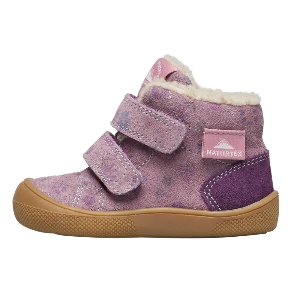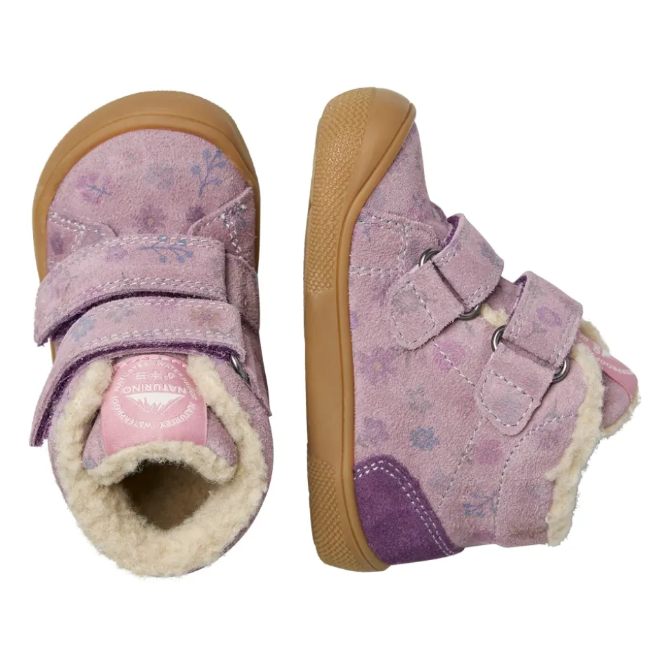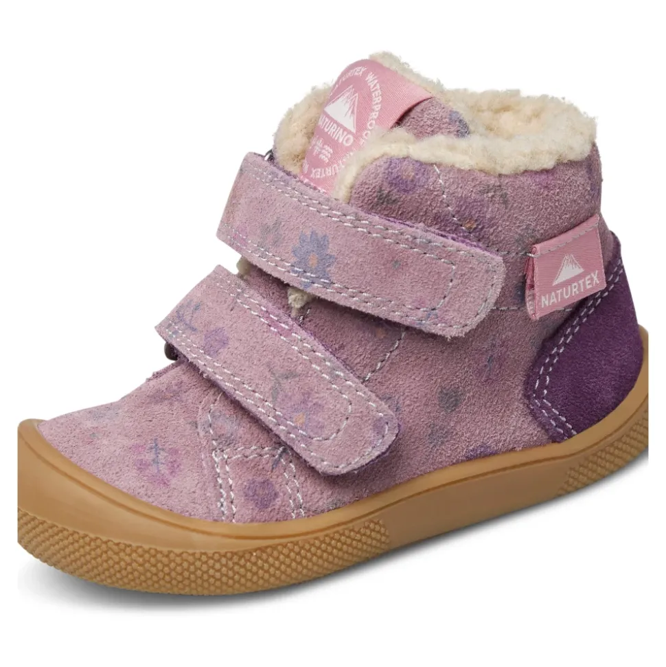 Naturino Spinni VL WP. suède enkellaarsjes combineren een zachte suède bovenkant met een ton-sur-ton bloemenprint en een dubbele klittenbandsluiting voor eenvoudig gebruik. Wollen voering en binnenzool voegen warmte toe, terwijl een rubberen buitenzool met verstevigde neus kleine voetjes beschermt. Belangrijkste kenmerken: Paars | Violet | Suède | Isolerende wollen voering voor warmte | Dubbele klittenbandsluiting | Wollen voering en binnenzool | Verstevigde neus | Rubberen buitenzool | Zachte suède bovenkant | Ton-sur-ton bloemenprint | Enkelhoge silhouet | Afmetingen & pasvorm: Barfoot fit | Samenstelling & verzorging: Suède (bovenkant) | Wol (voering en binnenzool) | Rubber (buitenzool)