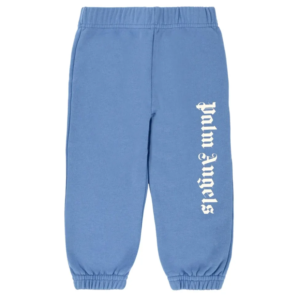 Upgrade de stijl van je kind met deze Palm Angels lichtblauwe katoenen fleece sweatpants met elastische taille en enkels. Versierd met een wit logo op één been. Gemaakt van 100% katoen. Machinewas op 30°C.