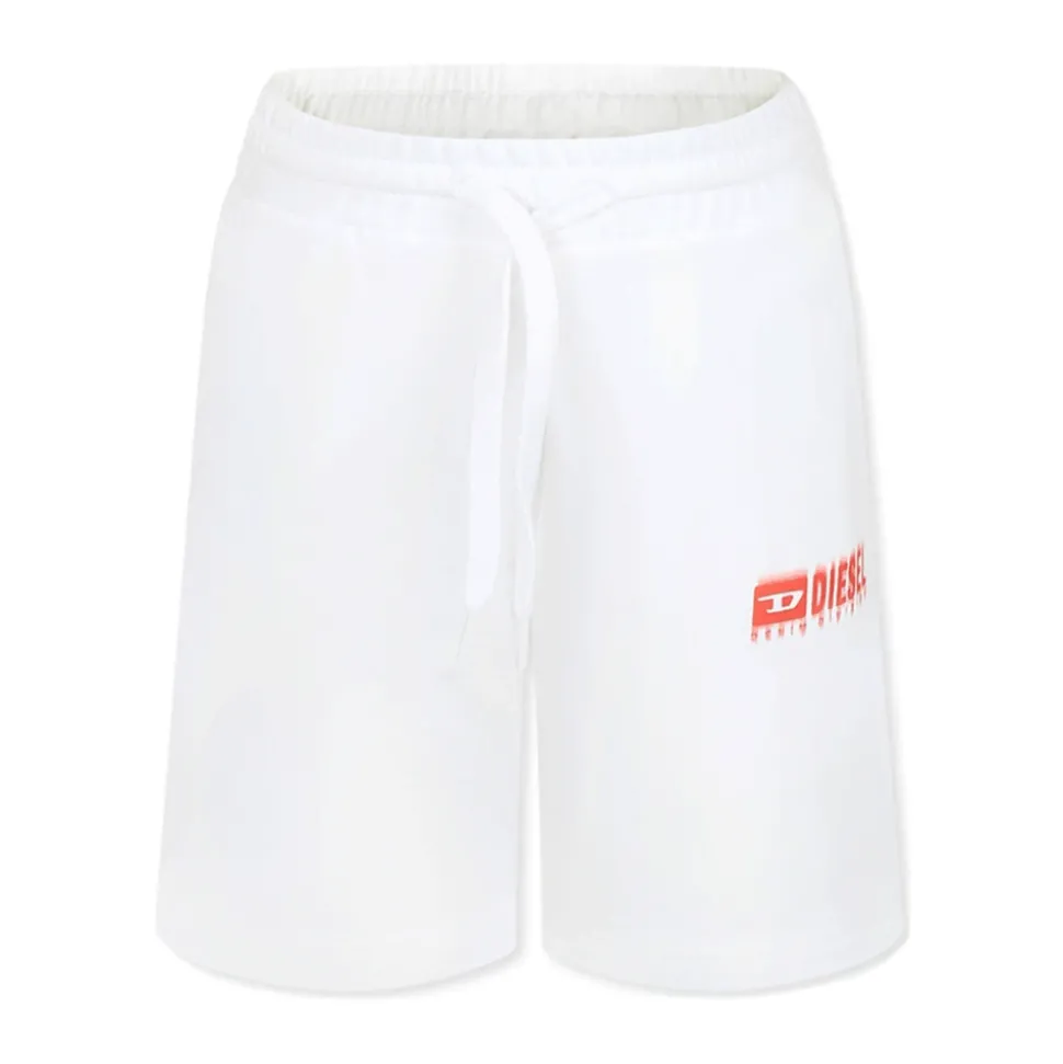 Upgrade je garderobe met de sportieve witte katoenen shorts van Diesel, ontworpen voor comfort met een elastische tailleband en trekkoord. Het rode Diesel-logo op de voorkant voegt een stijlvolle touch toe. Belangrijkste kenmerken: Wit | Katoen | Elastische tailleband | Trekkoord | Zijzakken | Rood Diesel-logo op de voorkant | Afmetingen en pasvorm: Regular fit | Samenstelling en onderhoud: 100% Katoen | Machinewas op 30°C
