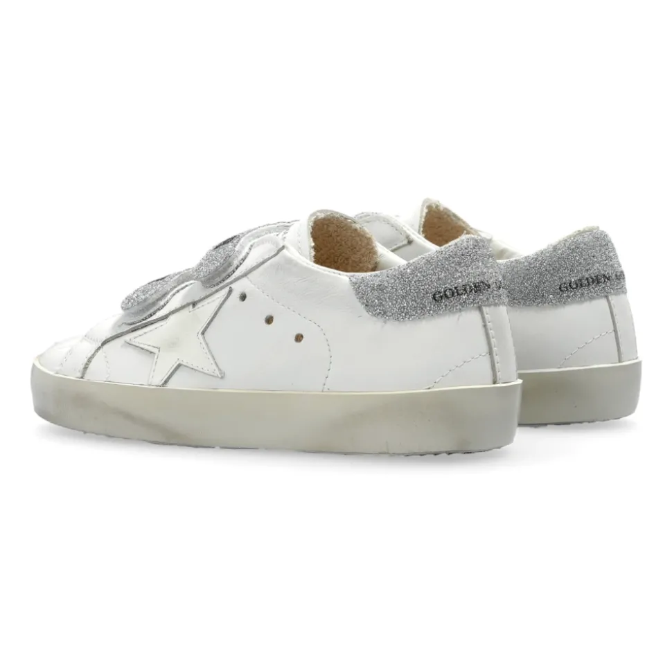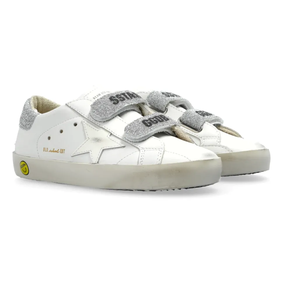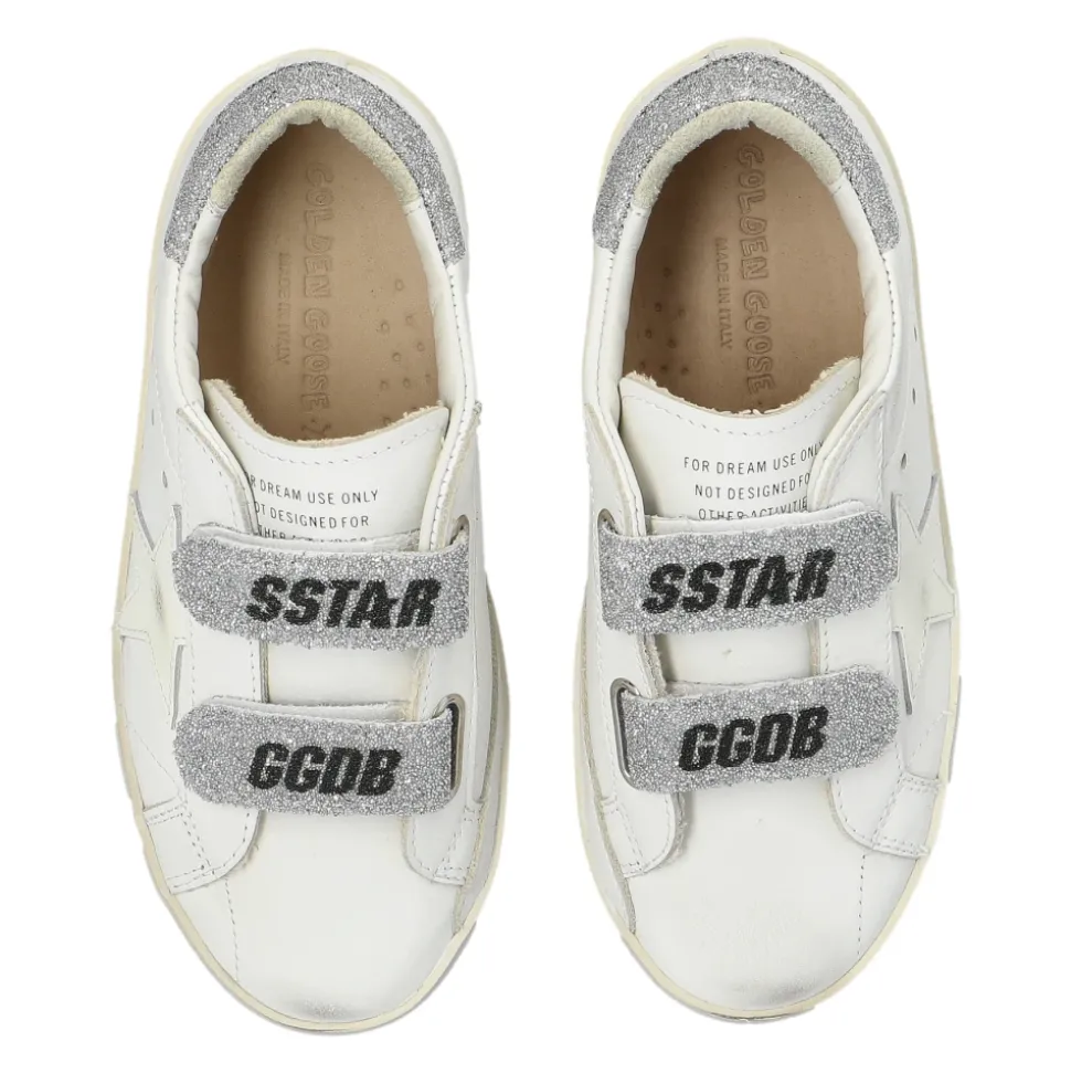 GOLDEN GOOSE KIDS SNEAKERS zijn het toonbeeld van kinderelegantie opnieuw uitgevonden in een moderne vorm. Ontworpen met de jongsten in gedachten, stralen ze EENVOUD VAN VORM en ingetogen luxe uit. De vorm van de klassieke lage sneakers is ANATOMISCH GEVORMD om op de voet van een kind te passen en zorgt voor comfort bij dagelijkse activiteiten. Het bovenwerk, gemaakt van hoogwaardig natuurlijk leer in het wit, is verrijkt met zilveren glitterinzetten op de hiel en op de klittenbandstrips. Het subtiele gouden “GOLDEN GOOSE” logo benadrukt de prestige van het ontwerp, terwijl de kenmerkende ster en de inscripties “SSTAR” en “GCDB” op de bandjes de aandacht vestigen op de identiteit van het merk. De zachte leren voering en flexibele rubberen zool bieden comfort en duurzaamheid, waardoor deze schoenen een perfecte keuze zijn voor zowel school als speciale gelegenheden. WAAROM DIT PRODUCT KIEZEN? * Exclusief vakmanschap van natuurlijk leer * Onderscheidend, minimalistisch ontwerp met de herkenbare ster * Comfortabele pasvorm dankzij anatomische profilering * Glitterdetails die een unieke stijl benadrukken * Authenticiteit van het Golden Goose-merk Zoolhoogte: 2cm Zoolhoogte op het hoogste punt: 2cm Klanten hebben gemeld dat dit merk groot uitvalt. We raden aan om één maat kleiner te kiezen dan je gebruikelijke maat.
