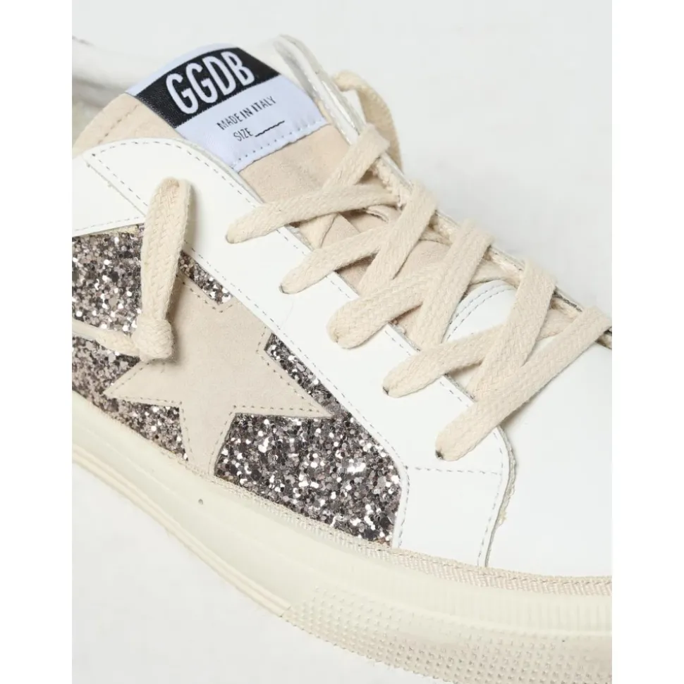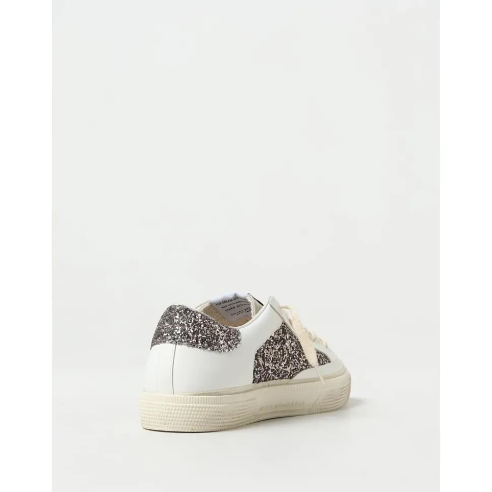 Verhoog de stijl van je kind met deze Golden Goose Sneakers in het wit. Gemaakt van leer en glitter, bieden deze sneakers een stijlvolle en comfortabele pasvorm voor dagelijks gebruik. Klanten hebben gemeld dat dit merk groot uitvalt. We raden aan om één maat kleiner te kiezen dan je gebruikelijke maat.