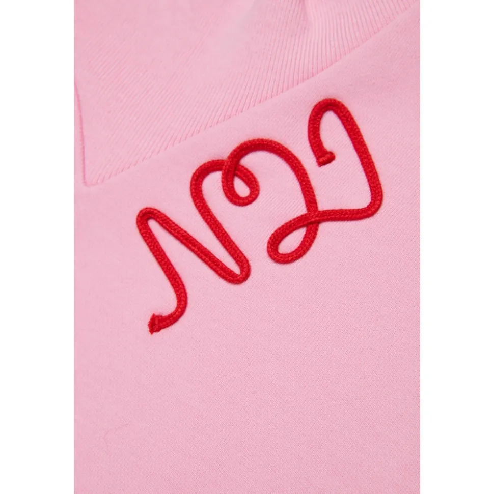 Sweatshirt met lange mouwen en ronde hals. Essentieel in design, het trekt de aandacht met een opvallend detail: het N°21-logo in cursieve versie, gemaakt van contrasterend koord aan de voorkant, wat een coole en herkenbare touch geeft aan het kledingstuk.