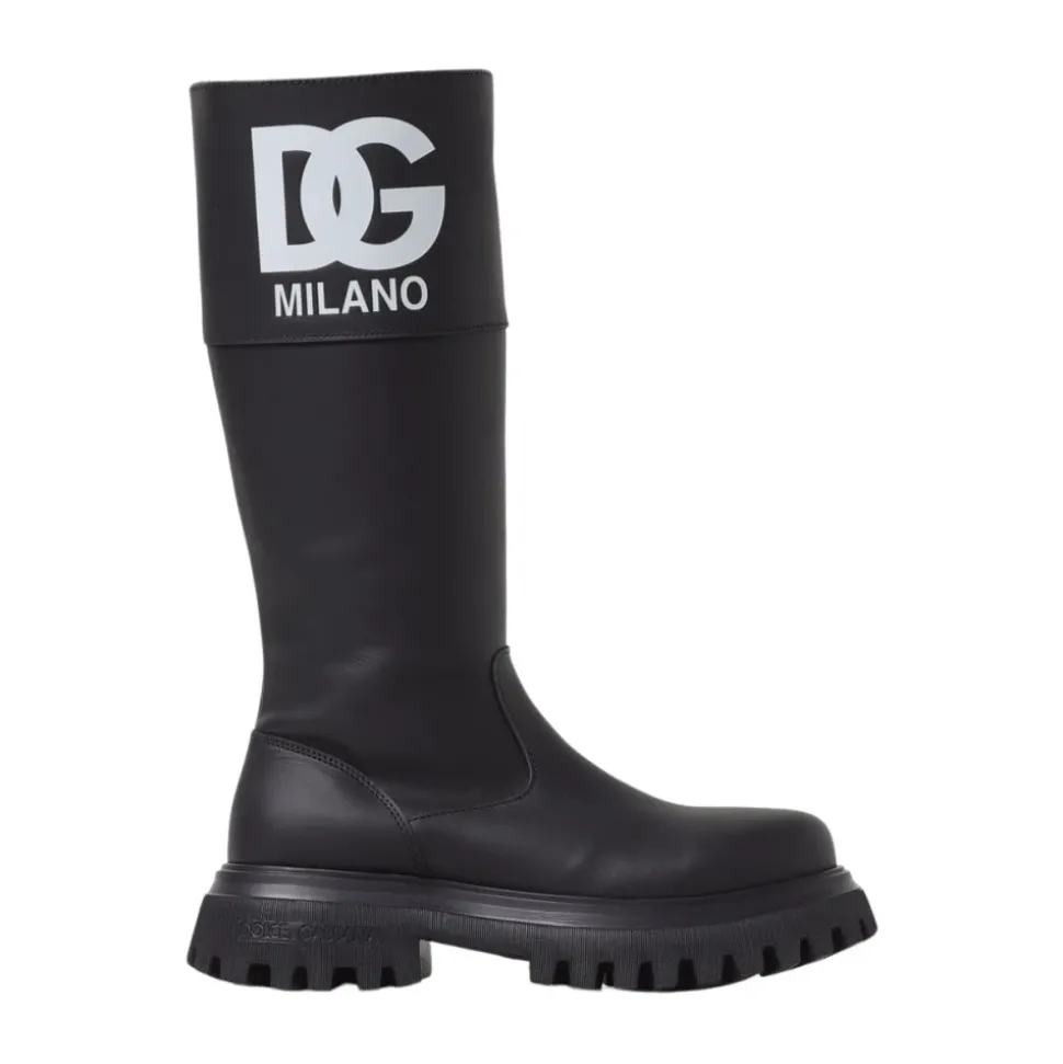 Deze stijlvolle zwarte hoge laarzen van Dolce & Gabbana zijn gemaakt voor elegantie en comfort, waardoor ze perfect zijn voor elke gelegenheid. Belangrijkste kenmerken: Zwart | Leer |