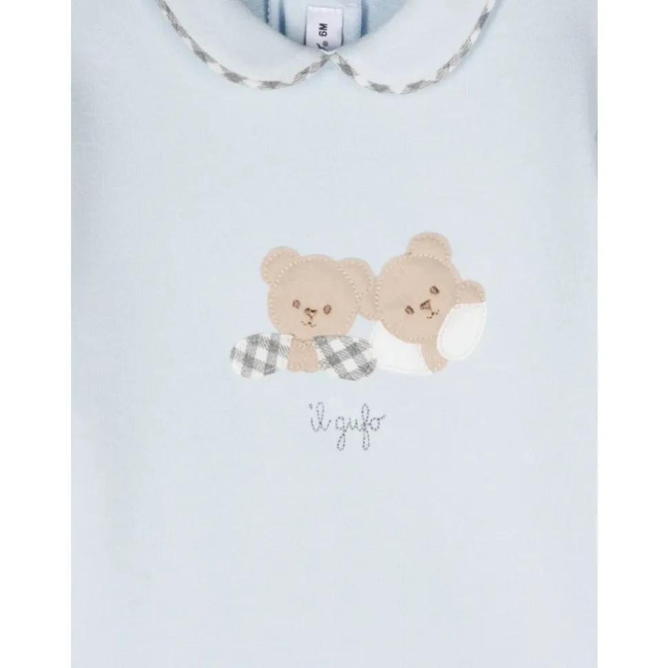Il Gufo presenteert de Stretch Katoen Fleece Jumpsuit met Kleine Beren, een zacht playsuit van stretchstof, ontworpen voor comfortabel dagelijks gebruik en gemakkelijk aankleden. Belangrijkste kenmerken: Blauw | Katoen | Stretchstof | Zachte fleecetextuur | Drukknoopsluiting aan de achterkant | Ronde kraag met geruite flanellen rand | Beerapplicaties op de voorkant | Samenstelling & onderhoud: 94% Katoen | 6% Elastaan | Machinewas 30°C, niet bleken, medium strijktemperatuur, zachte chemische reiniging, niet in de droogtrommel, hangend drogen.