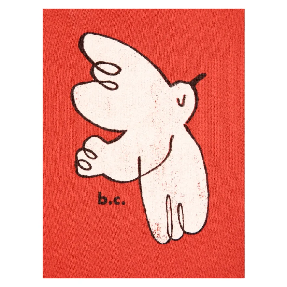 Introductie van de LOGO SWEATSHIRT uit de exclusieve collectie van de gerenommeerde ontwerper BOBO CHOSES. Deze uitzonderlijke rode sweatshirt is ontworpen voor jongens van 4 tot 14 jaar en biedt hen ongeëvenaard comfort en stijl. Gemaakt van zacht, aangenaam aanvoelend katoen, biedt de sweatshirt bewegingsvrijheid en een uitstekende pasvorm dankzij de elastische geribbelde manchetten aan de mouwen en taille. Het klassieke, rechte model met lange mouwen en een ronde hals maakt het perfect voor elke gelegenheid. De voorkant van de sweatshirt heeft een unieke print met een wit, gestileerd cartoon-dierkarakter, met de initialen