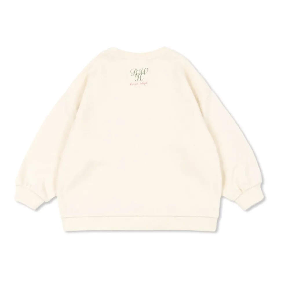 GEDRUKTE SWEATER van Konges Sløjd is de essentie van tijdloze elegantie in kindermode. De crèmekleurige tint, gehouden in een uniforme toon, geeft het ontwerp een gevoel van subtiliteit en harmonie. De klassieke, iets oversized snit met een uitgesproken stofstructuur en zorgvuldig afgewerkte geribbelde afwerking benadrukt het draagcomfort en behoudt een verfijnd karakter. De rijkdom aan details, zoals het decoratieve “Ciao Bella”-print in een kalligrafische stijl en de delicate groene strik, maken deze sweater opvallen tussen andere selecties. Unieke initialen onder de kraag zijn een discreet accent dat getuigt van nauwgezet vakmanschap. Hoogwaardig katoen garandeert zachtheid en is vriendelijk voor de gevoelige huid van een kind. WAAROM ZOU U DIT PRODUCT KOPEN? * katoen zorgt voor comfort en veiligheid. * Nauwkeurige afwerking met aandacht voor elk detail. * Unieke print en verfijnde details maken deze sweater uniek. * De snit biedt bewegingsvrijheid en comfort tijdens dagelijkse activiteiten.