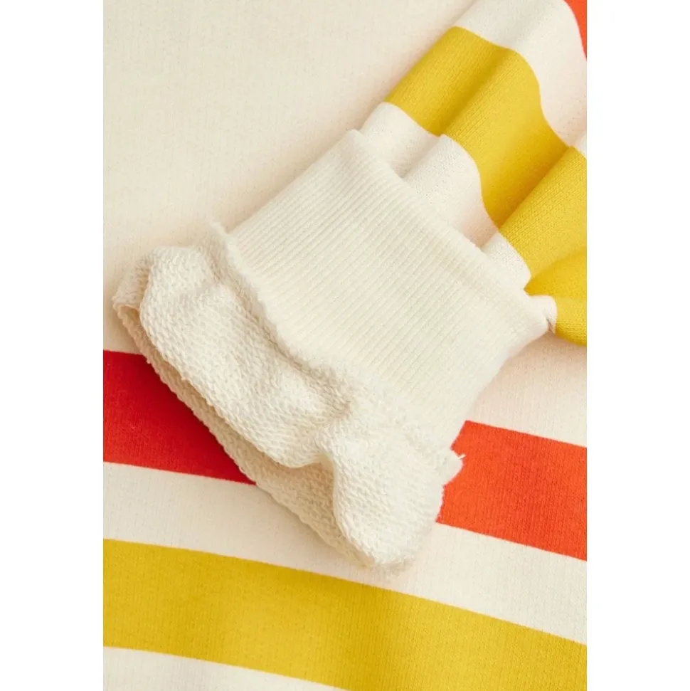 De BEDRUKTE SWEATER van MINI RODINI is een tijdloze keuze voor jonge kenners van comfort en schoonheid. Ontworpen in een elegante crèmekleur, betovert het met zijn zachtheid en nauwgezette afwerking, met elastische geribbelde manchetten aan de mouwen en zoom. Zijn kenmerkende karakter wordt gedefinieerd door drie gedurfde strepen in tinten rood, geel en groen, evenals een subtiel, speels accent – een bedrukte berenkop met een groene vlinderdas die glimlachen inspireert en spelen aanmoedigt. De badstof textuur aan de binnenkant omhult zachtjes met warmte en biedt comfort voor alledaagse activiteiten. Gemaakt van hoogwaardig katoen, weerspiegelt deze sweater perfect de filosofie van ontwikkeling en ethische productie waar het merk Mini Rodini om bekend staat. WAAROM DIT PRODUCT KIEZEN? * Natuurlijk en huidvriendelijk katoen * Origineel, kleurrijk ontwerp dat de verbeelding van kinderen stimuleert * Uitzonderlijk comfort dankzij de badstof textuur aan de binnenkant * Elegante details en een zorgvuldig verfijnde snit * Productie met respect voor het milieu en ethische arbeidsnormen
