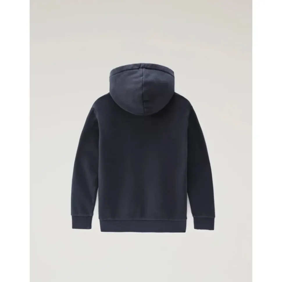 De Woolrich sweatshirt met volledige rits heeft een capuchon, een volledige ritssluiting en een geborduurd logo aan de voorkant voor eenvoudige laagjes. Het is ontworpen als een warme, alledaagse buitenlaag, ideaal voor koudere maanden. Belangrijkste kenmerken: Blauw | Blu | Katoen | Geschikt voor de winter | Volledige ritssluiting | Kangoeroezak | Capuchon | Effen kleur ontwerp | Geborduurd logo aan de voorkant | Geribbelde manchetten en zoom | Lange mouwen | Samenstelling & onderhoud: 85% Katoen, 15% Polyester | 100% Katoen | Machinewas 30°C. Niet strijken. Niet wassen met lichte kleuren. Gebruik geen bleekmiddel.