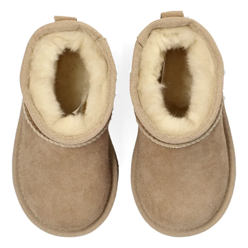 UGG T Classic Mini II combineert een strak, afgerond silhouet met een warme, comfortabele voering voor dagelijks gebruik in de winter. Ontworpen om gemakkelijk aan en uit te trekken en voor een zelfverzekerde grip op koude dagen. Belangrijkste kenmerken: Beige | Suède leer | Thermische isolatie | Ademende voering | Treklus aan de achterkant voor gemakkelijk aan- en uittrekken | Geïsoleerd interieur voor warmte | Afgeronde neus | Lage silhouet tot aan de enkels | Kenmerkende overlock-/zichtbare stiksels | Subtiel logo op de hiel | Afmetingen en pasvorm: Zoolhoogte op het hoogste punt: 2,5 cm | Lage bovenkant tot aan de enkels | Samenstelling en onderhoud: Suède leer | Natuurlijke wol | Lyocell | Rubber