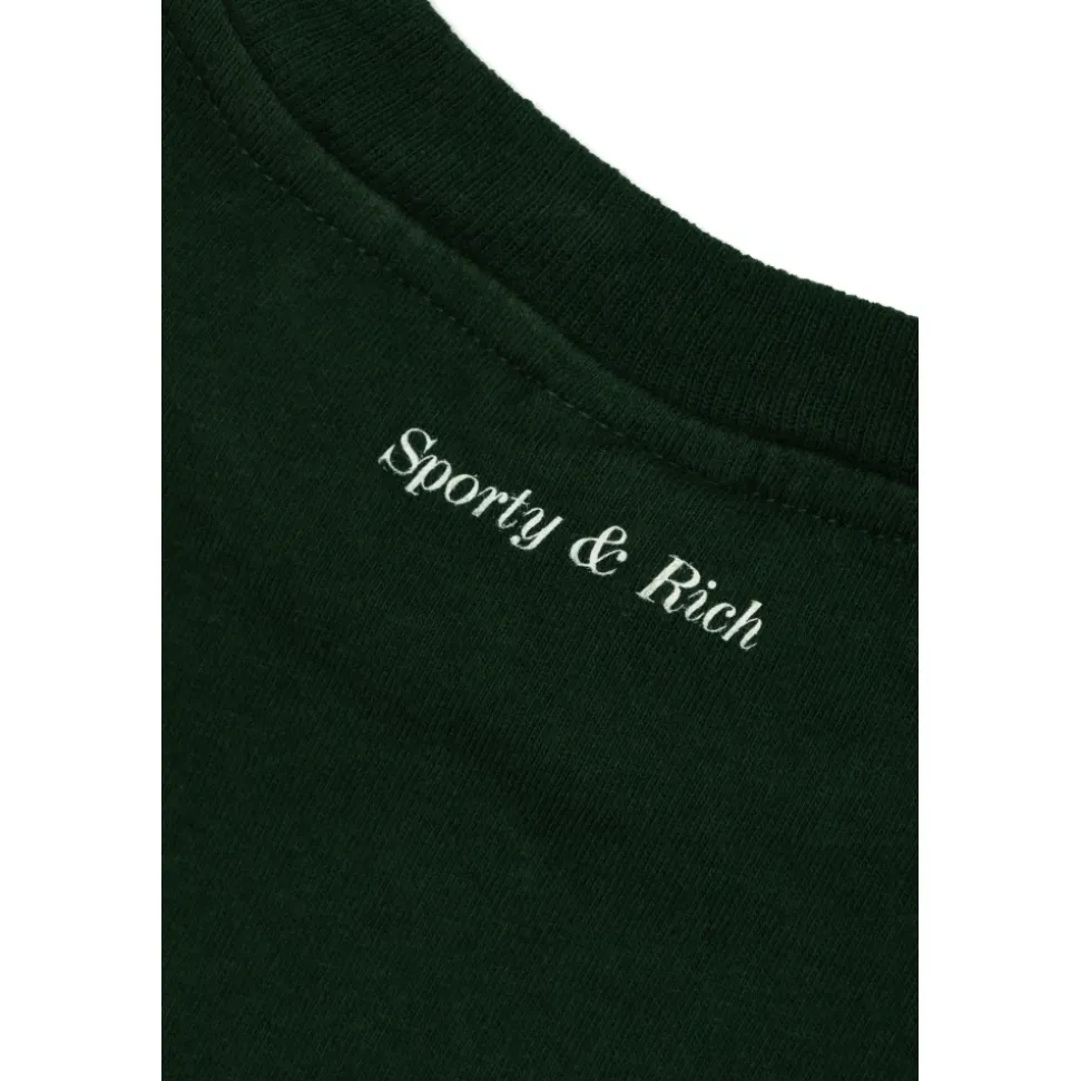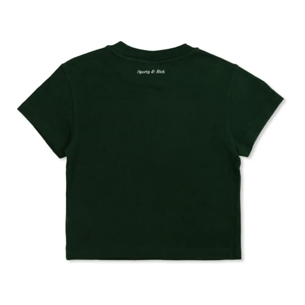 Ontdek de T-shirt met print van Sporty & Rich, een perfecte combinatie van stijl en comfort. Deze donkergroene tee heeft een klassiek ontwerp met korte mouwen en subtiele witte tekst, waardoor het een veelzijdige toevoeging is aan elke garderobe. Belangrijkste kenmerken: Groen | Katoen | Klassieke korte mouwen | Subtiele witte tekst op de voorkant | Kleine `Sporty & Rich` tekst bij de kraag | `Less but better` slogan op het label | Afmetingen en pasvorm: Regular fit | Samenstelling en onderhoud: 100% Katoen | Machinewas koud, droogtrommel laag