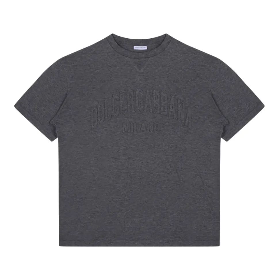 Upgrade de garderobe van je kind met deze Dolce & Gabbana Kids Melange Grey Embossed-Logo T-Shirt. Gemaakt van melange grijs katoen, deze t-shirt heeft een reliëf logo op de voorkant, korte mouwen, ronde hals en rechte zoom.