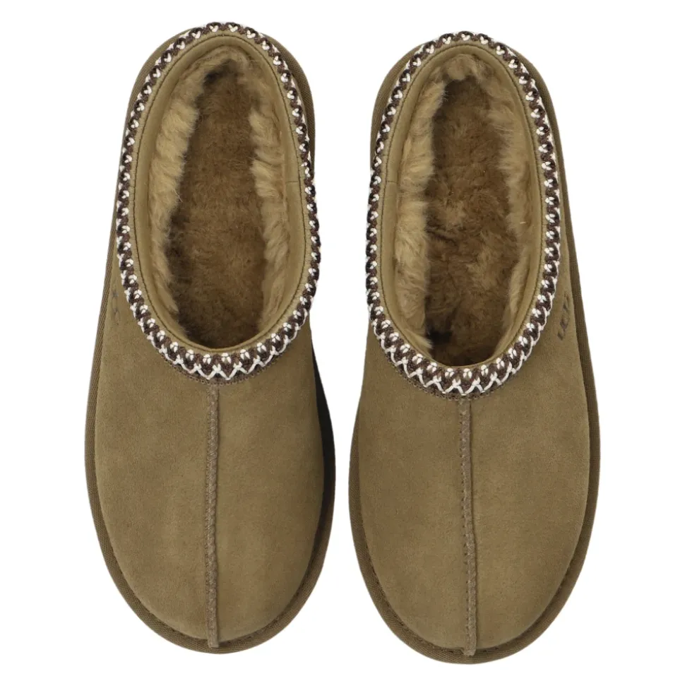 De UGG Tasman II Suede Slides combineren een suède bovenkant met een pluche binnenvoering voor warme, gemakkelijke instapcomfort—ideaal voor koelere dagen en casual uitstapjes. Belangrijkste kenmerken: Groen | Suède | rubberen zool | Uitstekende grip | Instapmodel | Pluche binnenvoering (UGGplush™) voor warmte | Schuim voetbed voor extra comfort | Ronde voorkant | Decoratieve gevlochten band rond de bovenrand | Warmte-geperst UGG logo | Afmetingen & pasvorm: Zoolhoogte: 2 cm | Zoolhoogte op het hoogste punt: 2,5 cm | Samenstelling & onderhoud: Suède bovenkant | UGGplush voering | Schuim voetbed | SugarSole™ rubberen buitenzool | Textiel binding
