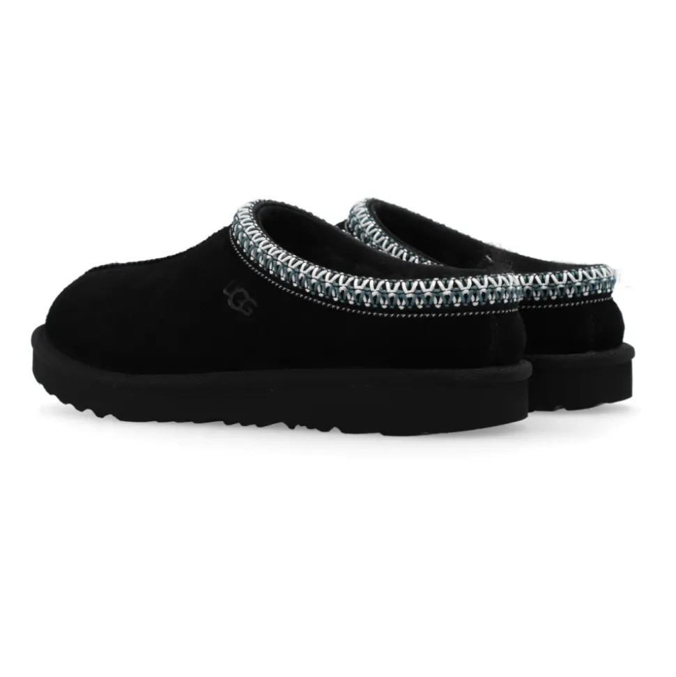 De UGG Tasman II Suede Slides combineren een bovenwerk van suède met een zachte UGGplush-voering en een gedempte zool, ontworpen om gemakkelijk aan en uit te glijden, zowel binnen als buiten. Belangrijkste kenmerken: Zwart | Suède | Zachte pluche voering | Lichtgewicht, gedempte zool | Verbeterde grip | Slip-on ontwerp voor gemakkelijk aan- en uittrekken | Schuim voetbed voor demping | Geschikt voor gebruik binnen en buiten | Logo in reliëf | Witte en blauwe grafische borduursels | Gevlochten kraagdetail (Tasman-vlecht) | Afmetingen en pasvorm: Zoolhoogte: 2 cm | Zoolhoogte op het hoogste punt: 2,5 cm | Samenstelling en onderhoud: Suède (bovenwerk) | UGGplush-voering (wol, TENCEL Lyocell) | Schuim voetbed | EVA-zool (SugarSole™ of Treadlite by UGG™) | Textiel binding