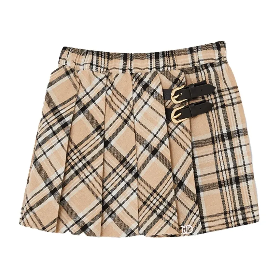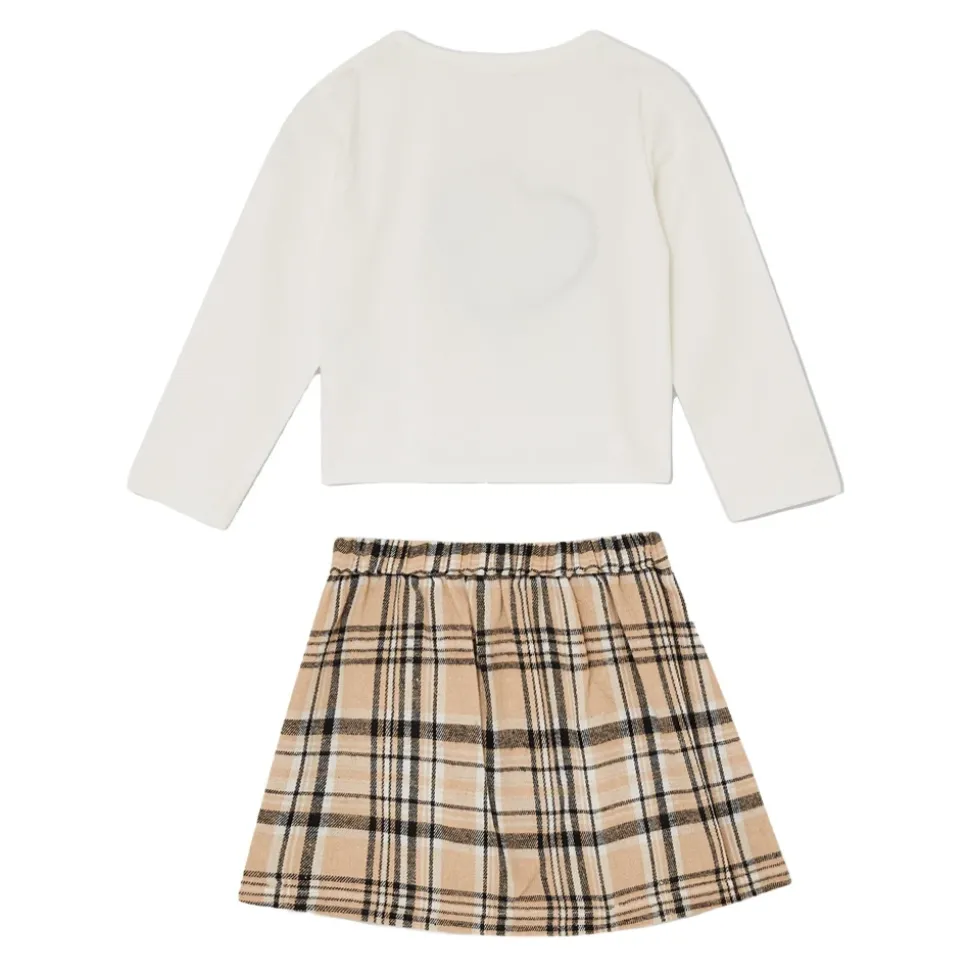Liu Jo Kids Set voor meisjes, met een zware sweatshirt met geborduurd Check Logo-print en een Golden Check-geruite rok met elastische tailleband en verstelbare gespen van imitatieleer. Gemaakt in China. Stofsamenstelling: 70% katoen, 30% polyester. Volg de wasinstructies op het label aan de binnenkant van het kledingstuk.
