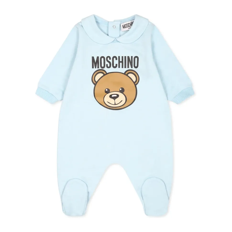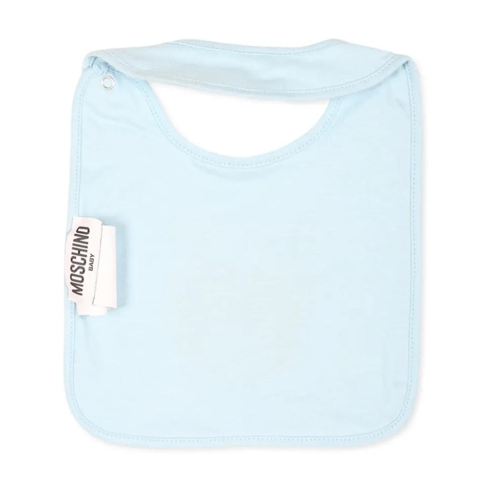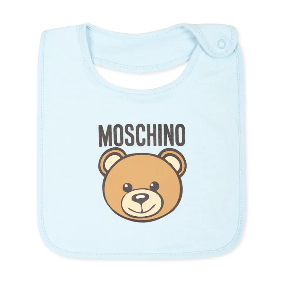 Kleed je kleintje in stijl met deze lichtblauwe babygrow set van Moschino Kids. De set bevat een gezellige fleece katoenen onesie met lange mouwen, peter pan kraag en drukknoopsluiting, versierd met een schattige Teddy Beer en logo. De set wordt ook geleverd met een muts met schattige oren en een slab met drukknoopsluiting, beide versierd met Teddy Beer en logo details. Gemaakt van 100% katoen. Machinewas op 30°C.