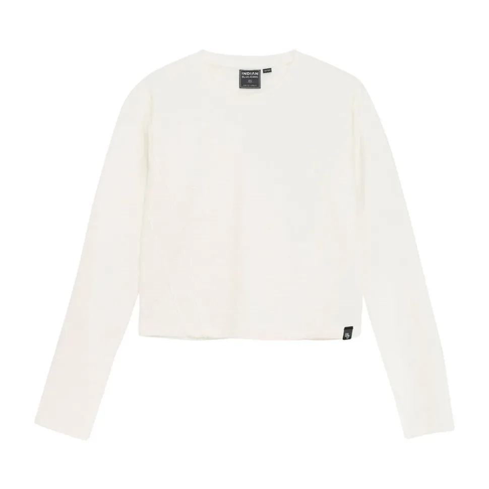 Indian Blue Jeans Top lange mouw 970352 is een cropped top met lange mouwen van Indian Blue Jeans, ontworpen voor casual laagjeslooks en dagelijks gebruik. Belangrijkste kenmerken: Beige | Ecru | Cropped zoom | Lange mouwen