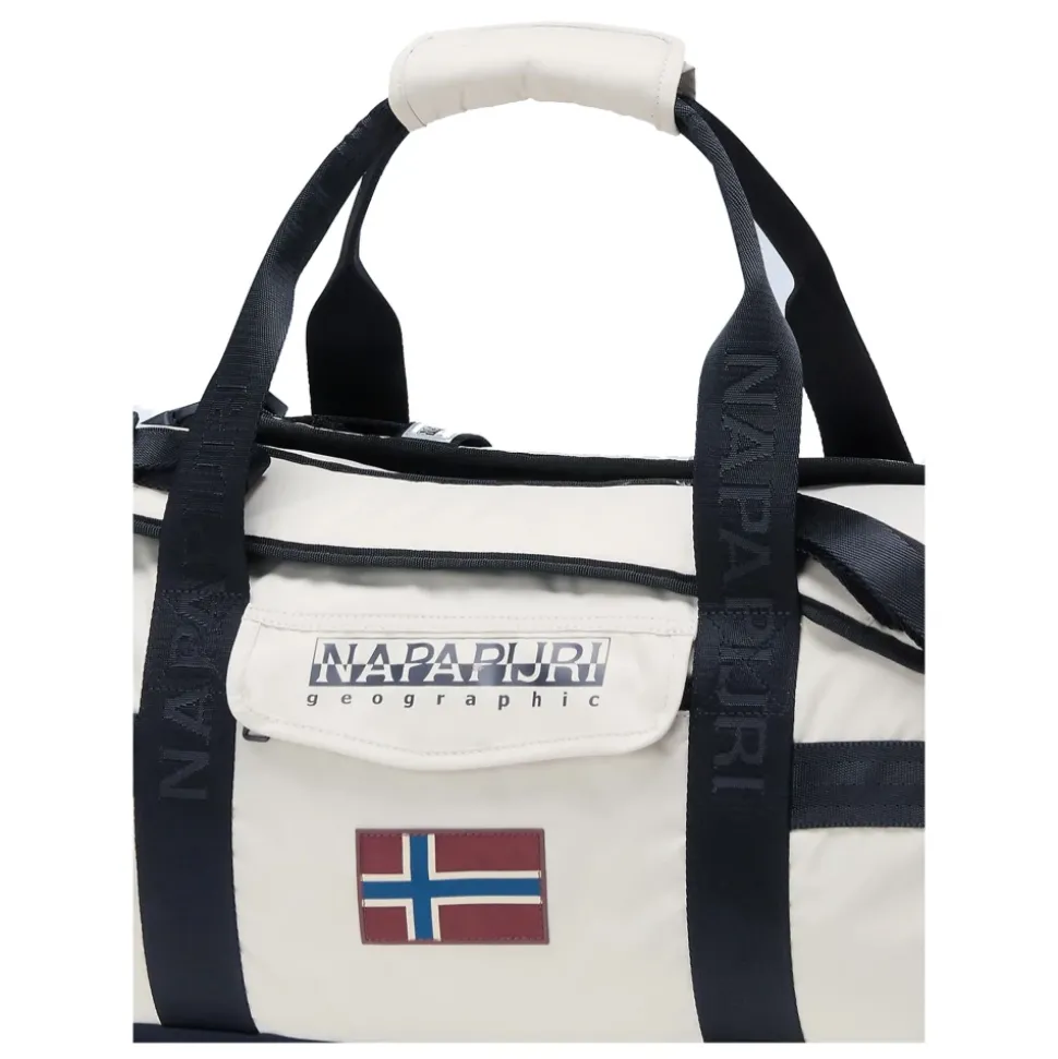 De Napapijri Travel Bag combineert een praktisch, veelzijdig ontwerp met reisklare eigenschappen. Hij valt op door de waterbestendigheid en een verstevigde basis die de duurzaamheid onderweg verhoogt. Belangrijkste kenmerken: Beige | Polyester | Waterbestendigheid tot 1000 mm waterkolom | Verstevigde basis voor extra duurzaamheid | Verstelbare, afneembare schouderriem | Tweewegrits voor gemakkelijke toegang | Binnenvak voor organisatie | Napapijri Geographic-print op buitenvak | Plastic D-ring en decoratieve badges | Cilindervormig silhouet | Afmetingen en pasvorm: Lengte: 46 cm | Diameter: 28 cm | Samenstelling en verzorging: 100% Polyester | Volg de wasinstructies op het interne waslabel.