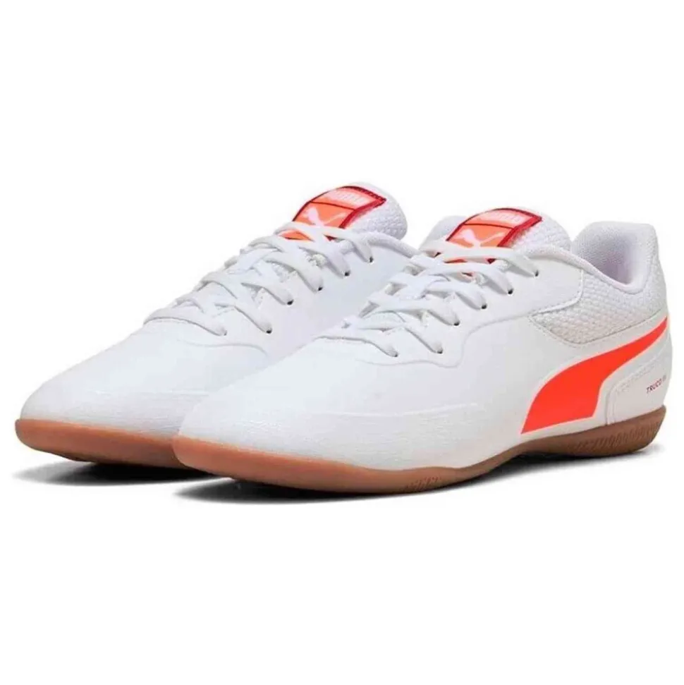 De PUMA Truco III combineert een low-profile design met indoor/outdoor grip voor zowel zaalspelen als dagelijks gebruik. De schoen heeft een bovenwerk van synthetisch leer en een gripvaste rubberen buitenzool voor gecontroleerde balbehandeling en betrouwbare duurzaamheid. Belangrijkste kenmerken: Wit | Blanco | Synthetisch leer | Non-marking rubberen buitenzool | Gedempte EVA-middenzool | Ontworpen voor indoor/outdoor grip | Vetersluiting | Uitneembare binnenzool | Low-profile silhouet | Gewatteerde voorvoet | Traditionele tong | Samenstelling & onderhoud: Bovenwerk: Synthetisch leer, Textiel | Voering: Textiel | Binnenzool: Textiel | Buitenzool: Rubber