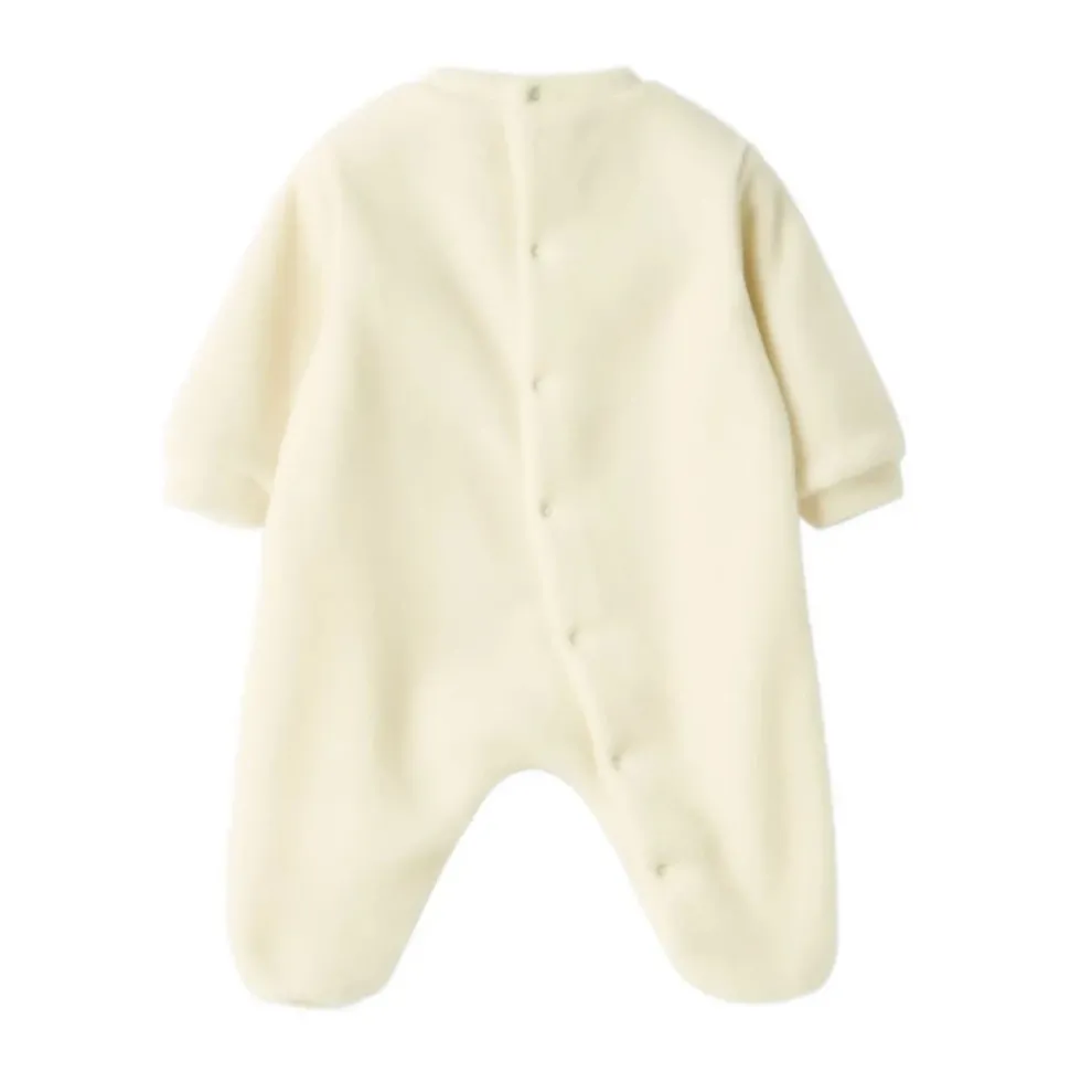 Il Gufo Tutina Piede is een romper met voetjes, ontworpen voor dagelijks gebruik en om in laagjes te dragen. Het silhouet uit één stuk biedt volledige bedekking van schouder tot teen. Belangrijkste kenmerken: Beige | Naturale | Met voetjes | Silhouet uit één stuk