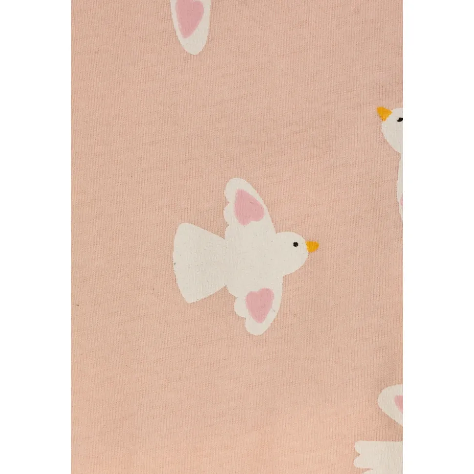 TWEE-PACK BABY SLAAPPAKKEN van Stella McCartney Kids schittert met verfijnd ontwerp en meesterlijke materiaalselectie. Elke slaappak heeft een klassieke silhouet met lange mouwen en bedekte voeten, die zachtjes je kleintje omhullen om bescherming en comfort te bieden tijdens zowel slaap als spel. Het ene model betovert met een delicaat, regelmatig patroon van witte vogels met roze harten op hun vleugels, terwijl het andere boeit met zijn eenvoud – versierd met een enkele, artistieke vogelafbeelding en een discreet geplaatst ontwerperslogo. De gladde, zachte katoenen jersey stof maakt deze kledingstukken uitzonderlijk prettig om aan te raken en flexibel, waardoor de bewegingsvrijheid van je kind nooit beperkt wordt. Minimalistische styling, oog voor detail en unieke grafische motieven maken deze set tot de belichaming van verfijnde elegantie in kindermode. WAAROM DIT PRODUCT KOPEN? * Uitzonderlijk ontwerp van het gerenommeerde merk Stella McCartney Kids * Extreem zacht en ademend katoenmateriaal * Klassieke snit die het comfort van het kind garandeert * Unieke, artistieke prints geïnspireerd door de natuurlijke wereld * Perfecte afwerking en subtiele, herkenbare details