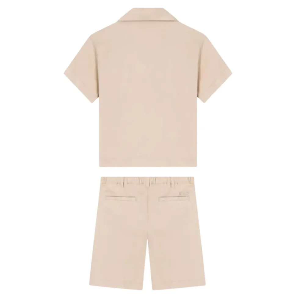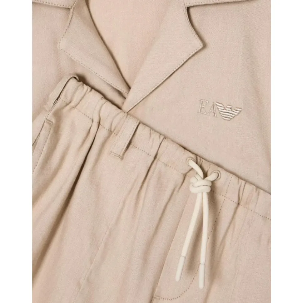 Het Emporio Armani tweedelig linnen pak combineert een stijlvol ontwerp met lichtgewicht materialen, perfect voor warme gelegenheden. De set bestaat uit een overhemd met korte mouwen en revers en een bijpassende bermuda short voor een verzorgde, comfortabele outfit. Belangrijkste kenmerken: Beige | Linnen | Elastische tailleband met trekkoord | Vier zakken | Knoopsluiting op het overhemd | Reverskraag | Korte mouwen | Logo borduursel op de borst | Bijpassende tweedelige set | Bermuda short | Afmetingen & pasvorm: Regular fit | Samenstelling & onderhoud: 60% linnen, 39% viscose, 1% elastaan | Machinewas 30°C